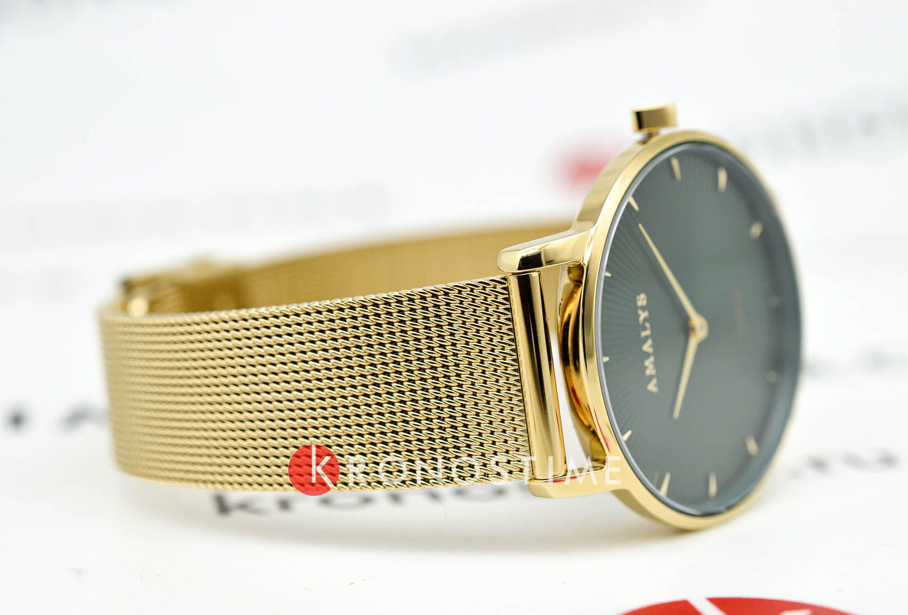 Amalys AMW-173 — женская модель с утончённым классическим дизайном, в которой сочетаются элегантность и практичность. Круглый корпус диаметром 23 мм выполнен из нержавеющей стали с PVD-покрытиемPVDУльтратонкое покрытие наносится в технике вакуумного напыления, сочетает в себе нитрид титана особой прочности со слоем золота или оксида хрома. Несёт в себе декоративную или защитную функцию., гармонирующим с браслетом шириной 16 мм в том же исполнении. Защитную функцию выполняет сапфировое стеклоСапфировое стеклоПрочный и надёжный материал из кристалла сапфира синтетического происхождения, характеризующийся особой твёрдостью и устойчивостью к царапинам и повреждениям., стойкое к царапинам и сохраняющее прозрачность. Механизм — кварцевый, обеспечивающий точность и стабильность хода. Браслет миланского плетения с PVD-покрытиемPVDУльтратонкое покрытие наносится в технике вакуумного напыления, сочетает в себе нитрид титана особой прочности со слоем золота или оксида хрома. Несёт в себе декоративную или защитную функцию. снабжён раскладным замкомРаскладной замокДанный вариант застежки используется только на часах с металлическим браслетом. Отличительная особенность такого крепления в том, что длина браслета становится универсальной и вы можете самостоятельно отрегулировать нужный вам размер – застежка просто двигается по браслету часов., который сочетает надёжность фиксации и удобство повседневного использования. Водозащита 3 ATM защищает часы от случайных брызг и дождя. Циферблат с римскими индексами и изящными стрелками подчёркивает классическую эстетику модели, делая её уместной как в повседневных образах, так и в торжественной обстановке.