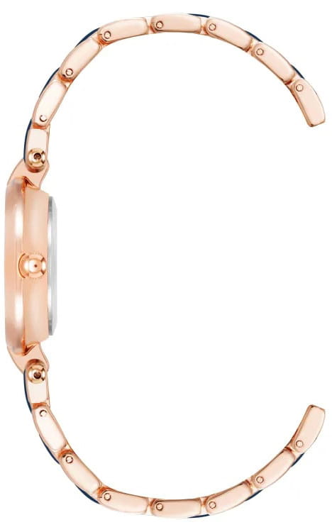 Женские американские часы с минеральным стекломМинеральное стеклоМинеральное стекло представляет собой искусственно выращенный минерал кварца. Такое стекло отличается особой устойчивостью к повреждениям и царапинам. Уступает по некоторым качествам сапфировому стеклу. Anne Klein Metals 3918NVRG, кварцевый механизм с высокой точностью. Класс водозащиты: 30 метров, позволит защитить корпус от случайных брызг или капель дождя. Корпус часов изготовлен из стали с PVD-покрытиемPVDУльтратонкое покрытие наносится в технике вакуумного напыления, сочетает в себе нитрид титана особой прочности со слоем золота или оксида хрома. Несёт в себе декоративную или защитную функцию.. Стальной браслет на раскладной застёжкеРаскладная застёжкаТакой тип застёжки используется только на браслетах из металла. Она никогда не раскрывается полностью, происходит разделение на 2 и более частей. Раскладывающая застёжка снизит вероятность потери часов к минимуму. с PVD-покрытиемPVDУльтратонкое покрытие наносится в технике вакуумного напыления, сочетает в себе нитрид титана особой прочности со слоем золота или оксида хрома. Несёт в себе декоративную или защитную функцию. и вставками эмали.