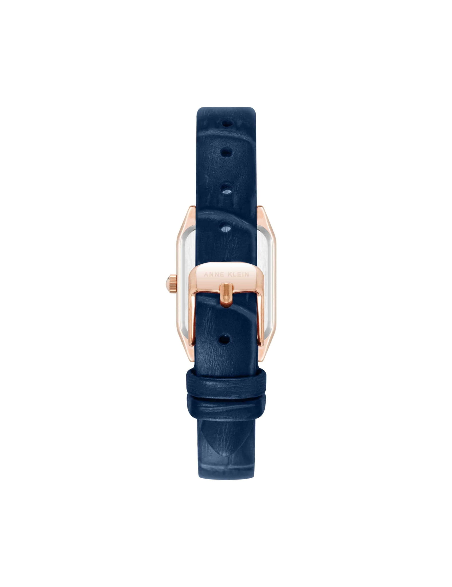 Женские кварцевые часы Anne Klein Consider It 5148NVNV представляют собой экологичный аксессуар с восьмиугольным корпусом 20.5 мм из металла с золотым покрытием. Модель оснащена кварцевым механизмом японского производства с точностью хода ±20 секунд в месяц и темно-синим циферблатом с золотистыми стрелками и метками. Защитное минеральное стеклоМинеральное стеклоМинеральное стекло представляет собой искусственно выращенный минерал кварца. Такое стекло отличается особой устойчивостью к повреждениям и царапинам. Уступает по некоторым качествам сапфировому стеклу. устойчиво к царапинам, а водонепроницаемость 30 метров обеспечивает защиту от брызг. Ремешок из экологичной кожи синего цвета с текстурой "крокодил" изготовлен из сертифицированной Leather Working Group кожи, что подтверждает ответственное производство. Устойчивый дизайн сочетает классическую форму с современными экологичными материалами, подчеркивая приверженность бренда ответственному производству.