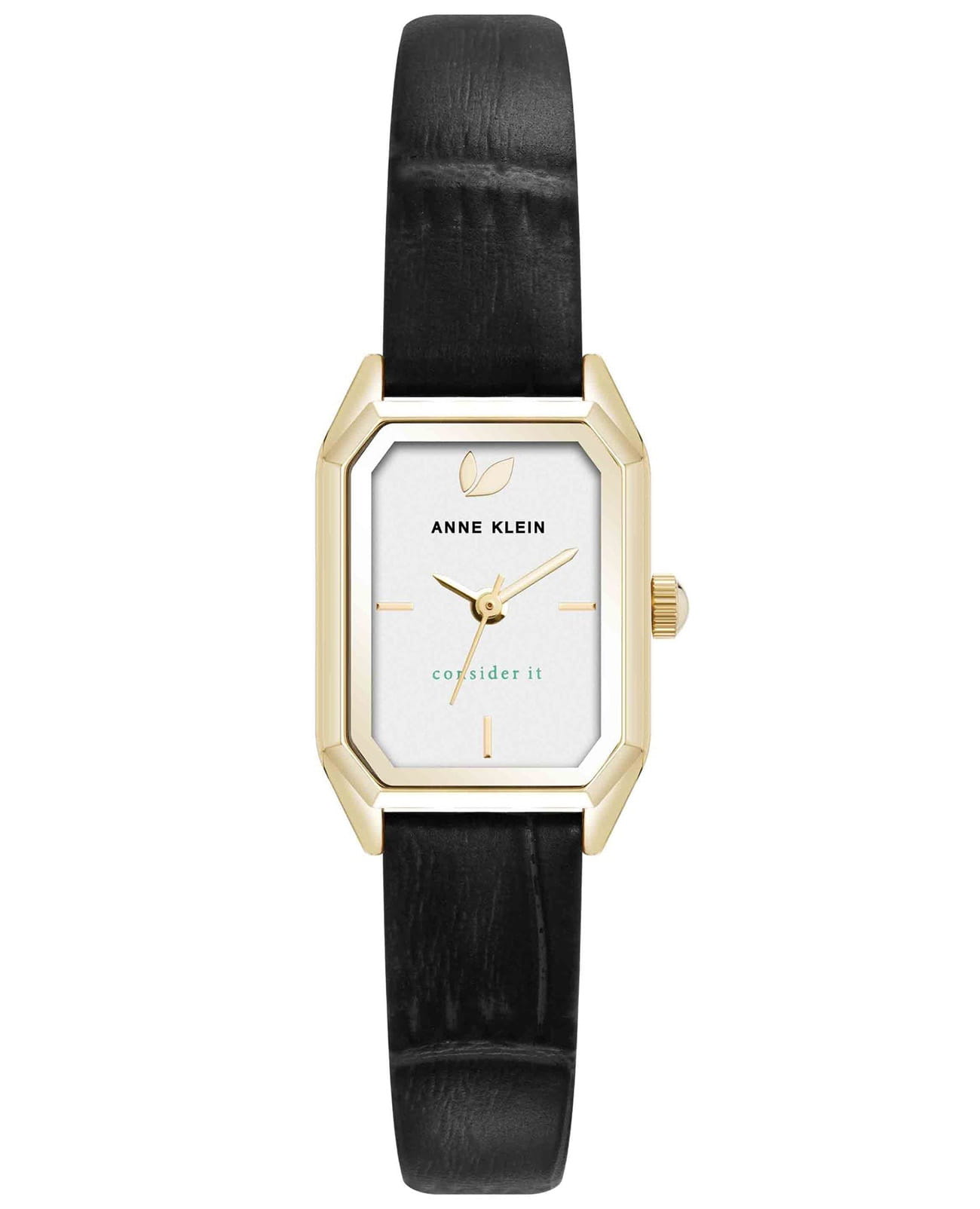 Женские кварцевые часы Anne Klein Consider It 5148SVBK представляют собой экологичный аксессуар с восьмиугольным корпусом 20.5 мм из металла с золотым покрытием. Модель оснащена кварцевым механизмом японского производства с точностью хода ±20 секунд в месяц и белым циферблатом с золотистыми стрелками и метками. Защитное минеральное стеклоМинеральное стеклоМинеральное стекло представляет собой искусственно выращенный минерал кварца. Такое стекло отличается особой устойчивостью к повреждениям и царапинам. Уступает по некоторым качествам сапфировому стеклу. устойчиво к царапинам, а водонепроницаемость 30 метров обеспечивает защиту от брызг. Ремешок из экологичной кожи черного цвета с текстурой "крокодил" изготовлен из сертифицированной Leather Working Group кожи, что подтверждает ответственное производство. Устойчивый дизайн сочетает классическую форму с современными экологичными материалами, подчеркивая приверженность бренда ответственному производству.