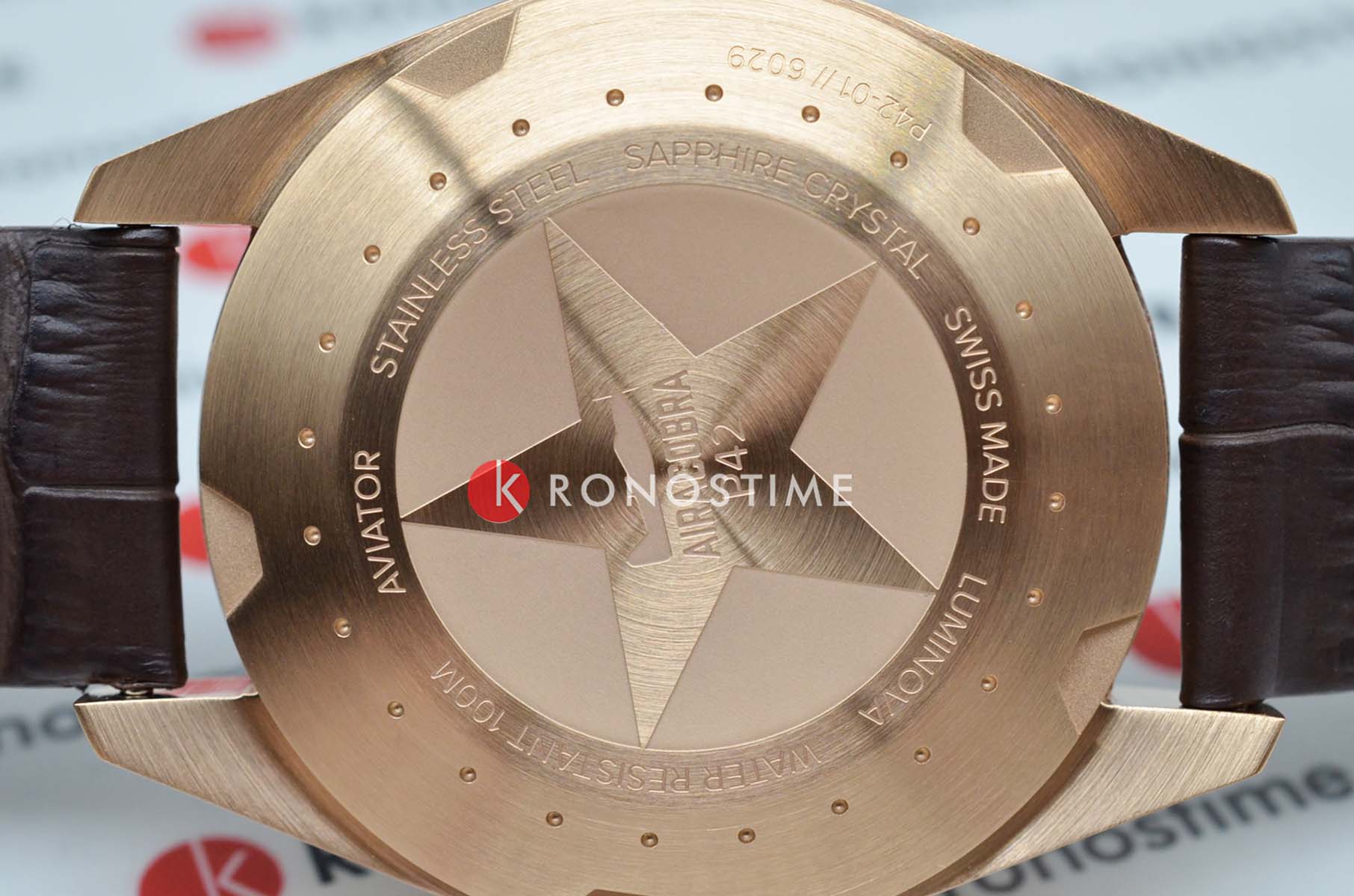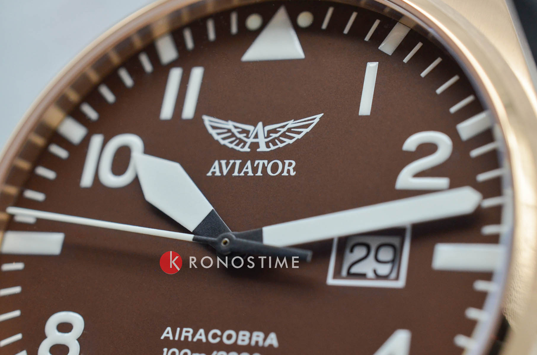 Aviator Airacobra V.1.22.2.151.4 — швейцарские часы в классике авиадизайна, сочетающие безупречную читаемость и высокую надёжность. Корпус диаметром 42 мм выполнен из нержавеющей стали с PVD-покрытиемPVDУльтратонкое покрытие наносится в технике вакуумного напыления, сочетает в себе нитрид титана особой прочности со слоем золота или оксида хрома. Несёт в себе декоративную или защитную функцию. — это придаёт модели благородный и уверенный облик.