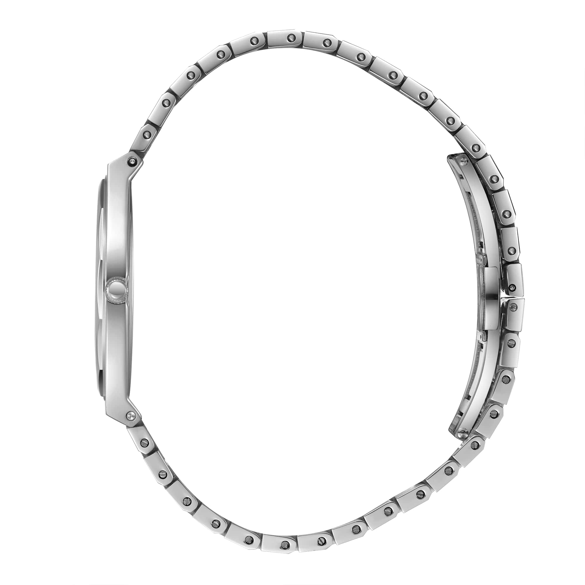 Beverly Hills Polo Club BP3668X.390 – элегантные женские часы, сочетающие стильный дизайн и высокую функциональность. Корпус диаметром 33 мм выполнен из стали, обеспечивающего прочность и долговечность. Циферблат украшен синтетическим бриллиантом, придающим модели роскошный вид, и защищён минеральным стекломМинеральное стеклоМинеральное стекло представляет собой искусственно выращенный минерал кварца. Такое стекло отличается особой устойчивостью к повреждениям и царапинам. Уступает по некоторым качествам сапфировому стеклу., устойчивым к царапинам. Часы оснащены точным кварцевым механизмом, гарантирующим надёжное отображение времени. Браслет из нержавеющей стали оснащён раскладной застёжкойРаскладная застёжкаТакой тип застёжки используется только на браслетах из металла. Она никогда не раскрывается полностью, происходит разделение на 2 и более частей. Раскладывающая застёжка снизит вероятность потери часов к минимуму., обеспечивающей комфортное ношение и надёжную фиксацию на запястье. Водозащита до 50 метров (5 ATM) позволяет использовать часы в повседневной жизни, включая кратковременное погружение в воду.