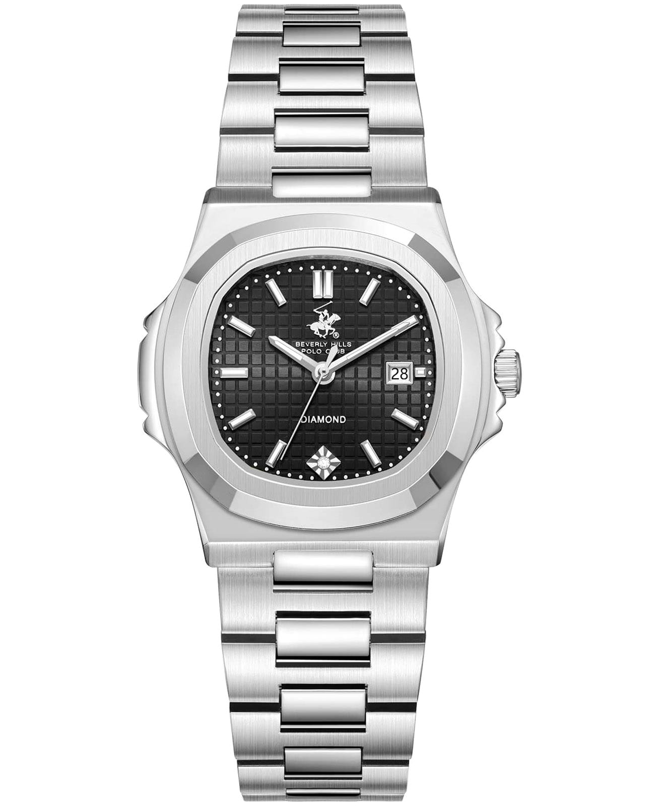 Американские женские часы Beverly Hills Polo Club BP3780X.350 - это стильный женский аксессуар, который сочетает элегантный дизайн и практичность. Корпус выполнен из нержавеющей стали серебристого цвета, диаметром 33,5 мм, что обеспечивает долговечность и утончённый внешний вид. Надежное минеральное стеклоМинеральное стеклоМинеральное стекло представляет собой искусственно выращенный минерал кварца. Такое стекло отличается особой устойчивостью к повреждениям и царапинам. Уступает по некоторым качествам сапфировому стеклу. с сапфировым покрытием защищает циферблат от царапин и обеспечивает долговечность. Метки в виде штрихов, в позиции "6 часов" инкрустирован синтетический бриллиант. Модель оснащена кварцевым механизмом, обеспечивающим высокую точность хода. Стальной браслет на застёжке-бабочке с кнопкамиЗастёжка "бабочка"Такой вид застёжки дополняется предохранителями, помогающими избежать случайного раскрытия браслета. Обладают изящным исполнением. обеспечивает комфортное ношение. Стрелки и метки оснащены люминесцентным покрытиемЛюминесцентное покрытиеПозволяет считывать показания времени в темноте. Производители наносят на стрелки, часовые индексы, безель или поверхность циферблата светонакопительный состав, дающий холодное свечение., обеспечивающим отличную видимость даже при слабом освещении. Окошко даты находится в положении 3 часа. Водозащита 30 метров позволит защитить корпус от случайных брызг или капель дождя. Эта модель – отличный выбор для тех, кто ищет сочетание стиля, качества и функциональности. Часы станут не только полезным аксессуаром, но и выразительным элементом вашего имиджа.