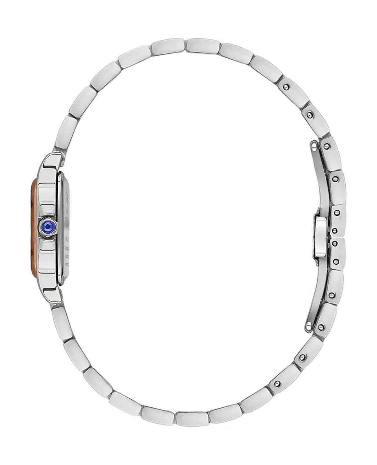 Завершает дизайн стальной браслет с частичным PVD-покрытиемPVDУльтратонкое покрытие наносится в технике вакуумного напыления, сочетает в себе нитрид титана особой прочности со слоем золота или оксида хрома. Несёт в себе декоративную или защитную функцию. и надёжная застёжка-бабочкаЗастёжка "бабочка"Такой вид застёжки дополняется предохранителями, помогающими избежать случайного раскрытия браслета. Обладают изящным исполнением. , обеспечивающая комфорт и уверенную фиксацию на запястье.