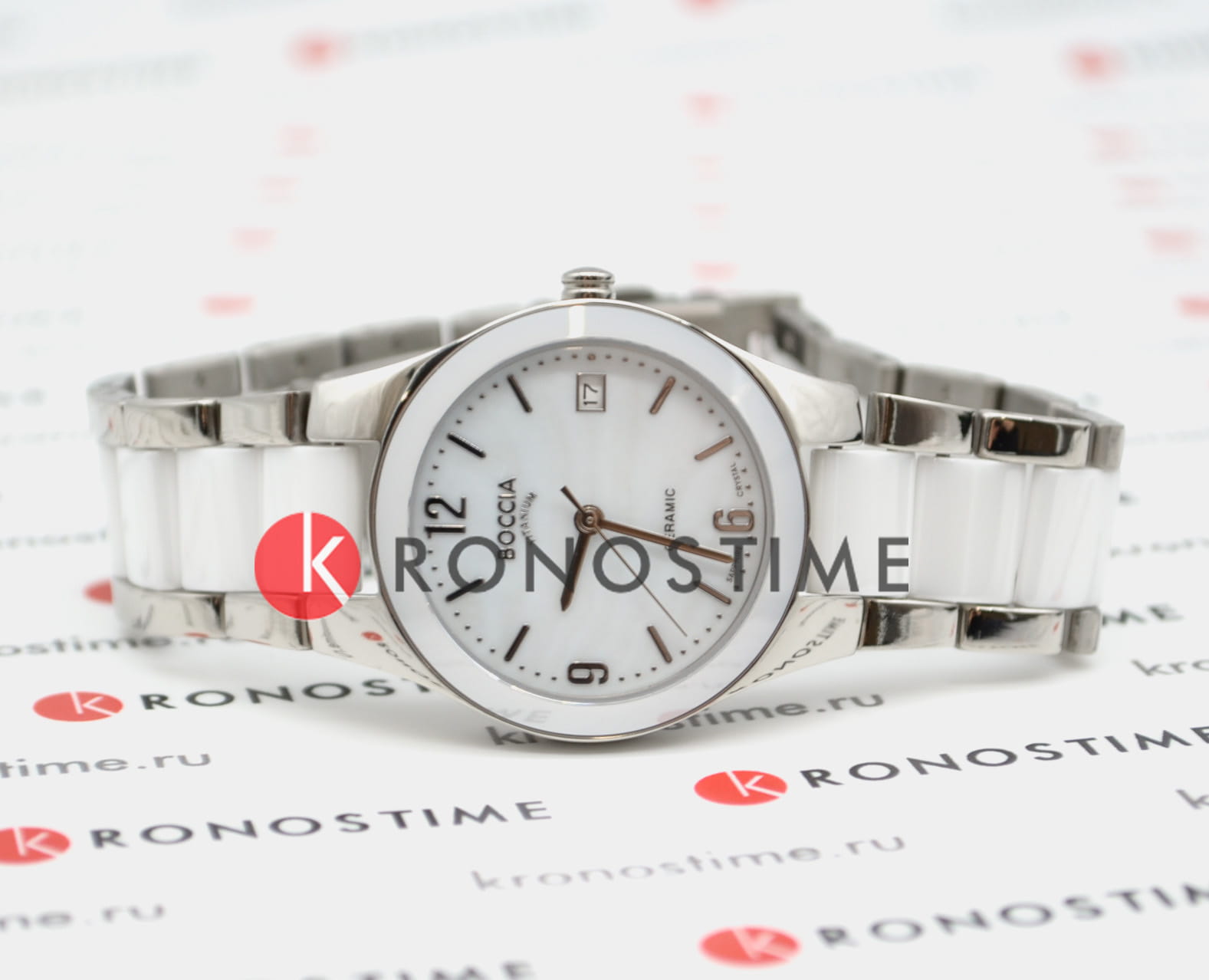 Женские немецкие титановые часы Boccia Titanium Circle-Oval 3189-01, кварцевый механизм с высокой точностью. Сапфировое стеклоСапфировое стеклоПрочный и надёжный материал из кристалла сапфира синтетического происхождения, характеризующийся особой твёрдостью и устойчивостью к царапинам и повреждениям. устойчивое к появлению царапин, обладающее высокой прозрачностью. Корпус изготовлен из титана. Неподвижный безельБезельВнешний ободок, закрепляющий стекло. В спортивных часах так называется поворотное кольцо с делениями на циферблате, выполняет роль таймера – замеряет отрезки времени на шкале. Неподвижный безель – элемент декора. Однонаправленно вращающийся безель на дайверских часах позволяет фиксировать моменты погружения и выныривания на поверхность. из керамикиВысокотехнологичная керамикаИнновационный запатентованный Rado материал с гладкой или матовой поверхностью. Керамика за счёт кристаллической структуры обладает повышенной устойчивостью от возникновения царапин. Материал способен принимать температуру тела человека, обеспечивая невероятный комфорт при ношении.. Циферблат с метками в виде арабских цифр. Окошко даты в положении 3 часов. Класс водозащиты: 50 метров, позволит защитить корпус от случайных брызг или капель дождя. Совместный браслет из титана и керамикиВысокотехнологичная керамикаИнновационный запатентованный Rado материал с гладкой или матовой поверхностью. Керамика за счёт кристаллической структуры обладает повышенной устойчивостью от возникновения царапин. Материал способен принимать температуру тела человека, обеспечивая невероятный комфорт при ношении. на раскладной застёжкеРаскладная застёжкаТакой тип застёжки используется только на браслетах из металла. Она никогда не раскрывается полностью, происходит разделение на 2 и более частей. Раскладывающая застёжка снизит вероятность потери часов к минимуму..