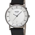 Мужские наручные часы Boccia Titanium 3533-03 с надёжным кварцевым механизмом. Корпус часов изготовлен из титана. Сапфировое стеклоСапфировое стеклоПрочный и надёжный материал из кристалла сапфира синтетического происхождения, характеризующийся особой твёрдостью и устойчивостью к царапинам и повреждениям. устойчивое к мелким механическим повреждениям. Класс водозащиты: 50 метров, позволит защитить корпус от случайных брызг или капель дождя. Кожаный ремешок на стандартной застёжке. Окошко даты находится в положении 6 часов. Стрелки с люминесцентным покрытиемЛюминесцентное покрытиеПозволяет считывать показания времени в темноте. Производители наносят на стрелки, часовые индексы, безель или поверхность циферблата светонакопительный состав, дающий холодное свечение..
