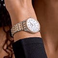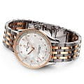 на застёжке-бабочке с кнопкамиЗастёжка "бабочка"Такой вид застёжки дополняется предохранителями, помогающими избежать случайного раскрытия браслета. Обладают изящным исполнением. . Стрелки с люминесцентным покрытиемЛюминесцентное покрытиеПозволяет считывать показания времени в темноте. Производители наносят на стрелки, часовые индексы, безель или поверхность циферблата светонакопительный состав, дающий холодное свечение.. Циферблат инкрустирован бриллантами.