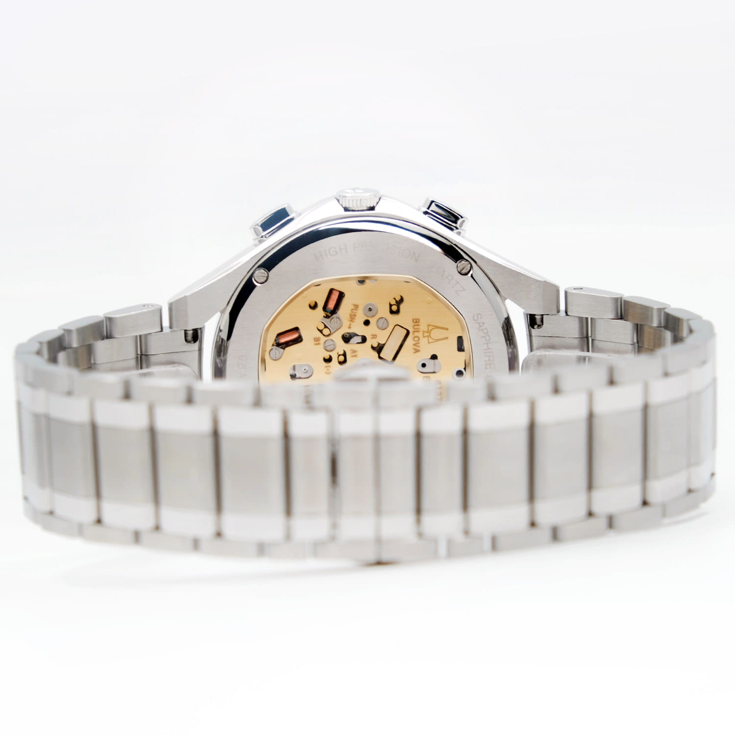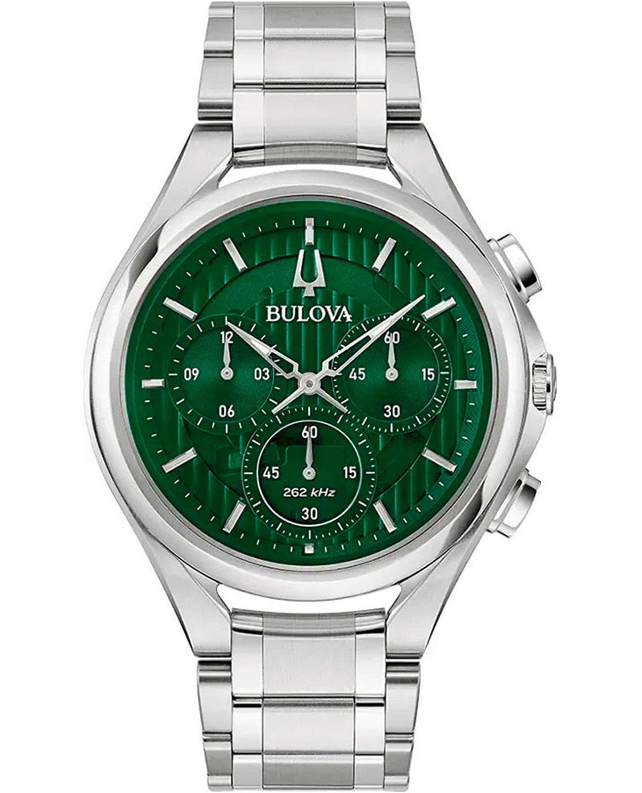 Мужские кварцевые часы-хронографХронографФункция позволяет измерять отрезки времени с особой точностью: часы, минуты, секунды. Верным признаком хронографа является наличие на циферблате 3 дополнительных окошек-счётчиков. Bulova CURV 96A297 – отражающий идеальное сочетание современного дизайна, надёжности и функциональности. Элегантный облик станет превосходным завершением образа, наделив его индивидуальным характером. Корпус из нержавеющей стали серебристого цвета, диаметром 44 мм идеально сбалансирован и элегантен. Защиту циферблата обеспечивает прочное сапфировое стеклоСапфировое стеклоПрочный и надёжный материал из кристалла сапфира синтетического происхождения, характеризующийся особой твёрдостью и устойчивостью к царапинам и повреждениям. с антибликовым покрытиемАнтибликовое покрытиеСлой оксида металла в 0,13-0,3 микрон, благодаря которому стекло часов не бликует и не отражает свет. Антибликовое покрытие уменьшает отражение света в 10 раз, обеспечивая отличную читаемость показателей циферблата. гарантирующее четкость показаний. Центральные часовая и минутная стрелки, секундная стрелка вынесена на малый циферблат. Стальной браслет на застёжке-бабочке с кнопкамиЗастёжка "бабочка"Такой вид застёжки дополняется предохранителями, помогающими избежать случайного раскрытия браслета. Обладают изящным исполнением. обеспечивает комфортное ношение. Водозащита 30 метров позволит защитить корпус от случайных брызг или капель дождя. Стрелки с люминесцентным покрытиемЛюминесцентное покрытиеПозволяет считывать показания времени в темноте. Производители наносят на стрелки, часовые индексы, безель или поверхность циферблата светонакопительный состав, дающий холодное свечение. позволяющие легко определять время даже в темноте. Эта модель – отличный выбор для тех, кто ищет сочетание стиля, качества и функциональности. Часы станут не только полезным аксессуаром, но и выразительным элементом вашего имиджа.