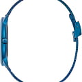 Аксессуар отражает fashion-стиль, циферблат украшен логотипом бренда. Он выполнен из стали 316L с PVD-покрытиемPVDУльтратонкое покрытие наносится в технике вакуумного напыления, сочетает в себе нитрид титана особой прочности со слоем золота или оксида хрома. Несёт в себе декоративную или защитную функцию. синего цвета, браслет изготовлен в технике миланского плетения. Швейцарский кварцевый калибр ETA 901.001 обеспечивает высокую точность показателей времени.