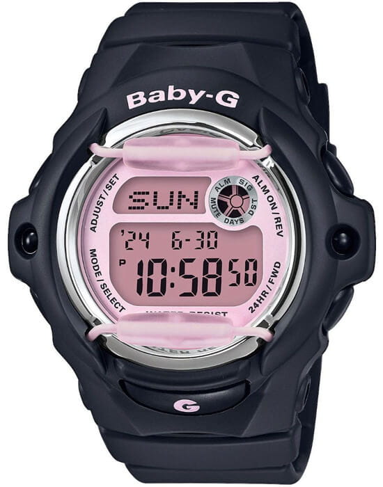 Аксессуар в чёрной расцветке с розовым циферблатом идеально смотрится как с летним платьем, так и со спортивной формой. Наручные часы устойчивы к ударам и падениям благодаря противоударному корпусуУдаропрочный корпусМеханизм заключён в корпус, выполненный из современных материалов, устойчивых к ударам, механическим повреждениям и падению с высоты: инновационный пластик, карбон, нержавеющая сталь, титан. из пластика. Японский кварцевый механизм работает от аккумулятора, рассчитанного на 3 года работы. Минеральное стекло. Отображение времени в 12/24-часовом формате. Электролюминесцентная подсветкаЭлектролюминесцентная подсветкаЭлектролюминесцентная панель устанавливается под ЖК-экраном часов, при нажатии кнопки электричество преобразуется в свет за счёт подачи напряжения на атомы фосфора, такой тип подсветки позволяет освещать весь циферблат.. Включение и выключение звука кнопок. Водостойкость 20 бар. Гибкий полимерный ремешок. Функции: 5 будильников, автоматический календарь, мировое времяМировое время Полезное часовое усложнение, отображающее время в основных городах и известных областях по всему миру, оно связано с часовыми поясами, удобно для путешественников и бизнесменов. , таймер обратного отсчёта, секундомер, записная книжка на 25 ячеек. Габариты: 45,9 x 42,6 x 15,4 мм.