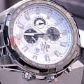 Стильная модель в чёрно-белом исполнении на вашем запястье будет привлекать внимание окружающих, оригинальное исполнение циферблата в сочетании с безупречным качеством используемых материалов даёт ошеломительный эффект. За точность хода +/- 30 секунд в месяц отвечает кварцевый механизм Miyota, батарейка рассчитана на 2 года работы. Минеральное стекло противостоит образованию царапин. Ударопрочный корпусУдаропрочный корпусМеханизм заключён в корпус, выполненный из современных материалов, устойчивых к ударам, механическим повреждениям и падению с высоты: инновационный пластик, карбон, нержавеющая сталь, титан. из нержавеющей стали 316L. Люминесцентная подсветкаЛюминесцентное покрытиеПозволяет считывать показания времени в темноте. Производители наносят на стрелки, часовые индексы, безель или поверхность циферблата светонакопительный состав, дающий холодное свечение.. Стальной браслет с предохранительной застёжкой. безельБезельВнешний ободок, закрепляющий стекло. В спортивных часах так называется поворотное кольцо с делениями на циферблате, выполняет роль таймера – замеряет отрезки времени на шкале. Неподвижный безель – элемент декора. Однонаправленно вращающийся безель на дайверских часах позволяет фиксировать моменты погружения и выныривания на поверхность. с IP-финишемIP-покрытиеМетод ионного напыления. Демонстрирует повышенную устойчивость к истиранию, окислению и химическим веществам. Под воздействием высокого давления и температуры около 1500°C молекулы металла надёжно соединяются с частицами корпуса часов.. Секундомер, хронографХронографФункция позволяет измерять отрезки времени с особой точностью: часы, минуты, секунды. Верным признаком хронографа является наличие на циферблате 3 дополнительных окошек-счётчиков., календарь, тахиметрТахиметрРазмеченная шкала, располагается на ободке или безеле часов. Тахиметр позволяет рассчитать скорость на определённом участке пути, расстояние измеряется в километрах или милях.. Габариты: 48,5 x 53,5 x 11,5 мм.