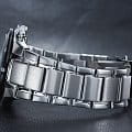 Ярко-синий циферблат стильно смотрится в сочетании с контрастными элементами оформления. Кварцевый хронографХронографФункция позволяет измерять отрезки времени с особой точностью: часы, минуты, секунды. Верным признаком хронографа является наличие на циферблате 3 дополнительных окошек-счётчиков. имеет крупную индикацию времени, что позволяет без проблем считывать информацию даже при беглом взгляде на запястье. Ударопрочный корпусУдаропрочный корпусМеханизм заключён в корпус, выполненный из современных материалов, устойчивых к ударам, механическим повреждениям и падению с высоты: инновационный пластик, карбон, нержавеющая сталь, титан. и браслет выполнены из нержавеющей стали 316L, отличающейся долговечностью. Кварцевый механизм с точностью хода +/- 30 секунд в месяц. Срок службы батарейки - 2 года. Закручивающаяся задняя крышка. Люминесцентная подсветка NeobriteЛюминесцентное покрытиеПозволяет считывать показания времени в темноте. Производители наносят на стрелки, часовые индексы, безель или поверхность циферблата светонакопительный состав, дающий холодное свечение.. Водонепроницаемость до 10 бар. БезельБезельВнешний ободок, закрепляющий стекло. В спортивных часах так называется поворотное кольцо с делениями на циферблате, выполняет роль таймера – замеряет отрезки времени на шкале. Неподвижный безель – элемент декора. Однонаправленно вращающийся безель на дайверских часах позволяет фиксировать моменты погружения и выныривания на поверхность. с чёрным IP-покрытиемIP-покрытиеМетод ионного напыления. Демонстрирует повышенную устойчивость к истиранию, окислению и химическим веществам. Под воздействием высокого давления и температуры около 1500°C молекулы металла надёжно соединяются с частицами корпуса часов.. Минеральное стекло. Секундомер, отображение даты. Габариты: 43,4 x 48,1 x 11,4 мм.