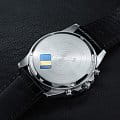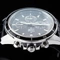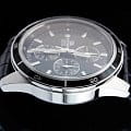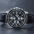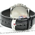 Корпус из нержавеющей стали, ремешок из натуральной кожи, счётчики хронографа.