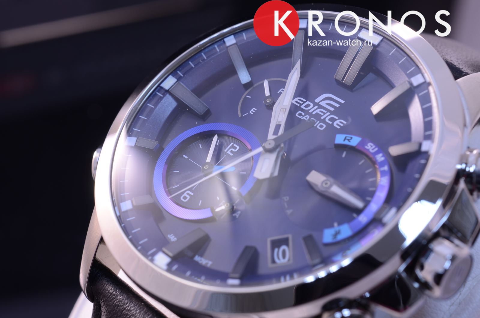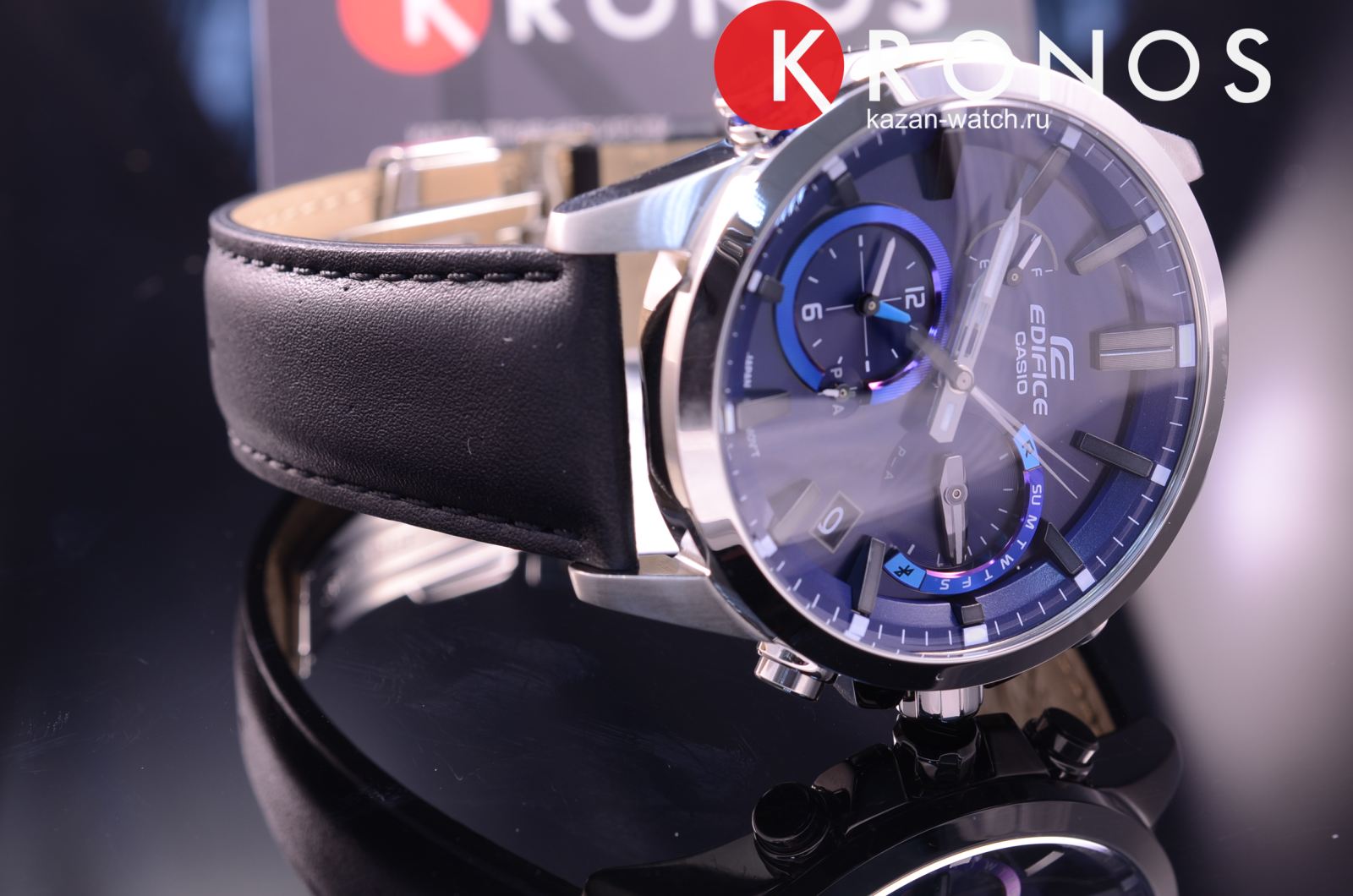 Edifice Bluetooth. Питание от солнечной энергии, индикатор низкого заряда батареи. Функция автоматического сохранения энергии. Светонакопительное покрытие необрит продолжает светиться в темноте даже после непродолжительного пребывания на свету. Беспроводная технология Bluetooth® 4.0 со сверхнизким потреблением энергии для синхронизации со смартфоном. При подключении к смартфону часы корректируют текущее время, а также копируют настройки мирового времени. Функция поиска телефона. Второй часовой пояс. Ретроградный указатель дня недели. Завинчивающаяся заводная головка с защитой, застежка бабочка.