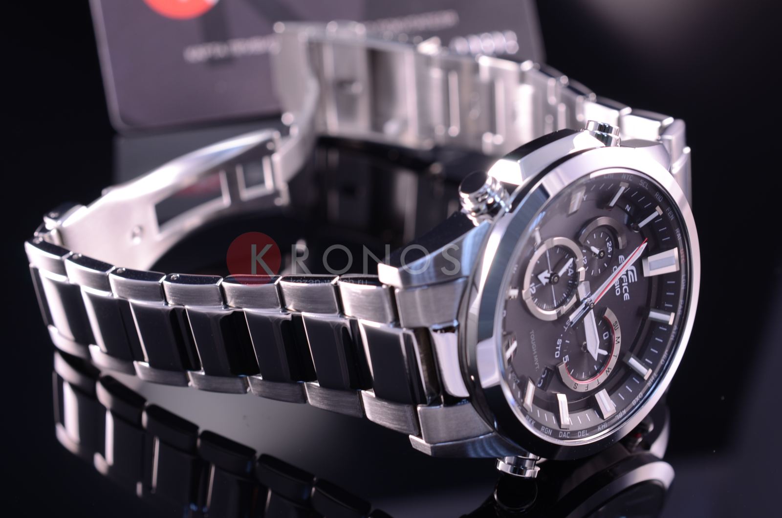 Мужские японские часы Casio Edifice EQW-T640D-1A из спортивной коллекции Edifice привлекают автомобильным исполнением и полезными дополнительными возможностями.