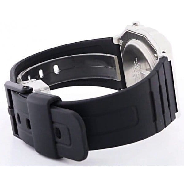 Электронные часы в чёрно-серебристом исполнении напоминают первые модели от Casio благодаря винтажному 8-угольному ударопрочному корпусуУдаропрочный корпусМеханизм заключён в корпус, выполненный из современных материалов, устойчивых к ударам, механическим повреждениям и падению с высоты: инновационный пластик, карбон, нержавеющая сталь, титан., сделанному из надёжного пластика. Аксессуар с кварцевым механизмом работает от батарейки, характеризующейся высоким сроком службы - до 7 лет. Циферблат оснащён светодиодной микроподсветкойСветодиодная подсветкаСветодиодная или LED-подсветка обеспечивает появление яркого холодного свечения за счёт LED-элементов - маленьких лампочек. Они потребляют минимальное количество энергии, чаще всего можно встретить 1 светодиод, в нижней части циферблата., освещающей его сбоку. Органическое стекло легко полируется. Гибкий полимерный ремешок. Ежедневный будильник, секундомер, автоматический календарь, 12 и 24-х часовое отображение времени. Габариты: 33,2 x 38 x 8,5 мм.