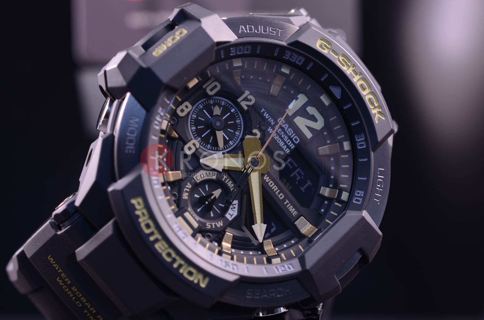 Ударопрочные, спортивные мужские часы оснащены: Термометром (-10°C / +60°C); Цифровым компасом; Светодиодной подсветкой с функцией автоматической подсветки при наклоне часов; Функцией секундомера. Прошедшее время, сплит-тайм и общее время измеряется с точностью 1/100 секунды. Пределы измерений до 1 часа; Таймером обратного отсчета с функцией автоповтора. Максимальное время измерения 60 минут; Будильником (5 установок); Автоматическим календарем. Функцией мирового времени. Особая ударопрочная конструкция защищает от ударов и вибрации. Минеральное стекло устойчивое к возникновению царапин. Ремешок из полимерного материала. Натуральный полимерный материал является идеальным для изготовления ремешка благодаря своей чрезвычайной прочности и гибкости. Корпус выполнен из высококачественного пластика с алюминиевым безелем. Задняя крышка стальная. Водонепроницаемость (20 Бар).