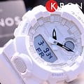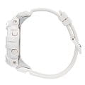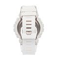 Белоснежные наручные часы с противоударным корпусомУдаропрочный корпусМеханизм заключён в корпус, выполненный из современных материалов, устойчивых к ударам, механическим повреждениям и падению с высоты: инновационный пластик, карбон, нержавеющая сталь, титан. сделаны из полимерного пластика, который устойчив к повреждениям и падению с высоты. Такой же материал был выбран и для гибкого ремешка, обеспечивающего комфортное ношение. Это первая модель из линейки G-Shock, оснащённая шагомером, теперь вы сможете в любое время следить за своей активностью. Японский кварцевый механизм работает от батарейки, срок её службы - 2 года. Минеральное стекло. Светодиодная подсветкаСветодиодная подсветкаСветодиодная или LED-подсветка обеспечивает появление яркого холодного свечения за счёт LED-элементов - маленьких лампочек. Они потребляют минимальное количество энергии, чаще всего можно встретить 1 светодиод, в нижней части циферблата. циферблата, люминесцентное покрытиеЛюминесцентное покрытиеПозволяет считывать показания времени в темноте. Производители наносят на стрелки, часовые индексы, безель или поверхность циферблата светонакопительный состав, дающий холодное свечение. стрелок. Bluetooth-синхронизацияBluetoothСовременная технология, позволяющая синхронизировать часы с телефоном и переносить данные. Часы с Bluetooth расширяют возможности вашего смартфона и делают его использование ещё более удобным., таймер с автоповтором, секундомер, автоматический календарь, будильник. Водостойкость при давлении 20 бар. Габариты: 54,1 x 48,6 x 15,5 мм.