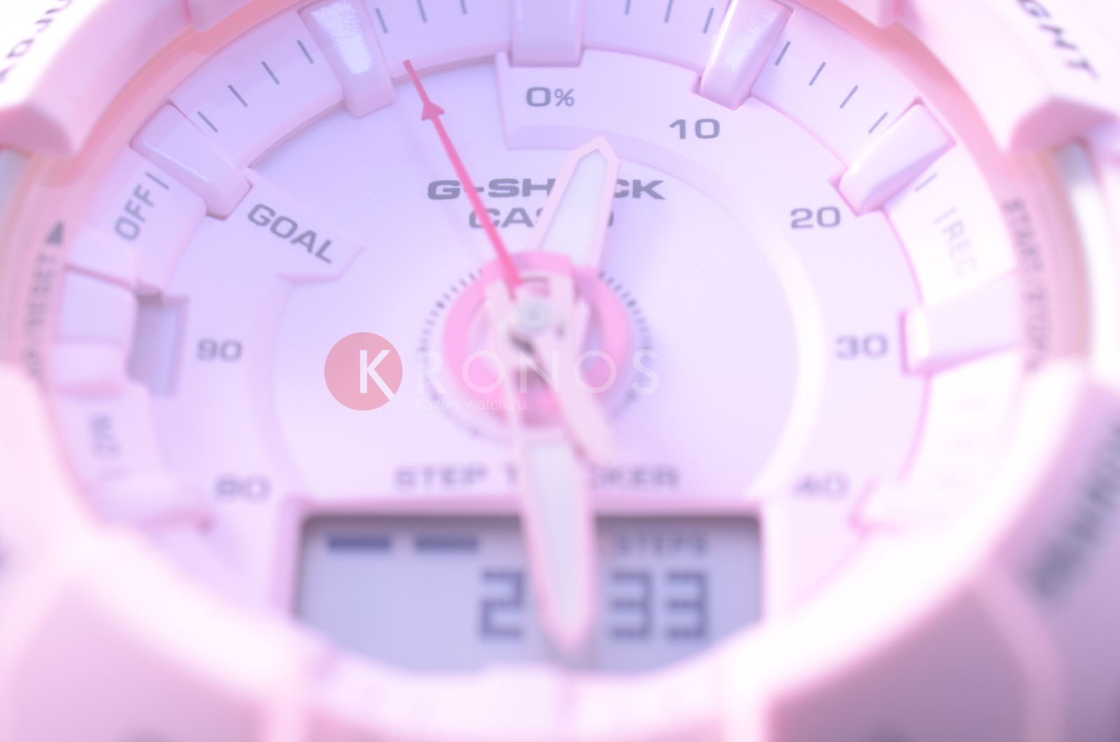 Стильная и привлекательная модель наручных часов Casio G-SHOCK GMA-S130-4A с кварцевым механизмом, характеризуется внешней привлекательностью и оригинальным дизайнерским решением. Корпус и ремешок изготовлен из полимерного пластика, что обеспечивает высокую степень защиты механизма. Подсветка светодиодом позволяет считывать данные с аналого-цифрового дисплея независимо от интенсивности внешнего освещения. Так же в это модели присутствует шагомер возможность отслеживать информацию о пройденных расстояниях, допускаются различные диапазоны настроек. Так же в модели часов GMA-S130-4A предусмотрено наличие будильника, секундомера, таймера и второго часового пояса. Выбор формата отображения времени: 12-ти и 24-х часовой, точность хода предполагает погрешность не более 15 секунд в месяц. Элемент питания CR2016 прослужит не менее 2 лет. Размер корпуса часов 49,45,9х15,5 мм, вес 52 грамма, водонепроницаемость WR200.