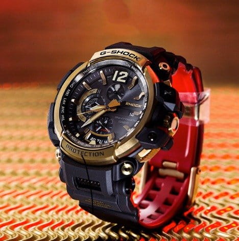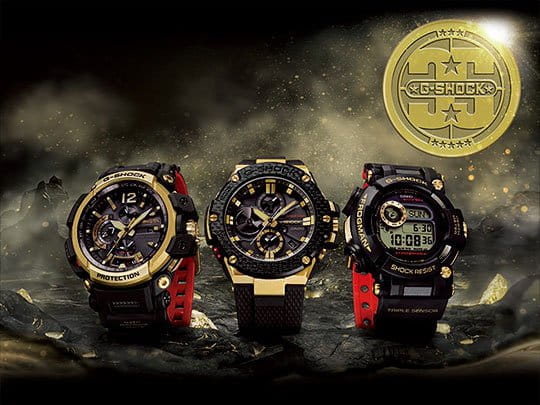 Всего к своему 35-летию G-SHOCK выпустили несколько юбилейных моделей из различных серий, в том числе и серию Gold Tornado в черно-золотом дизайне с узнаваемой красной внутренней стороной ремешка