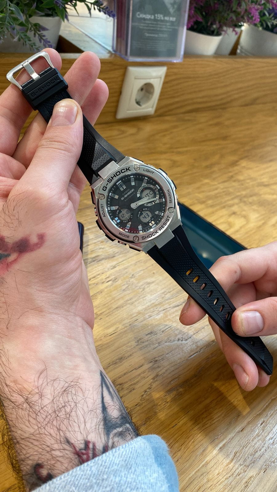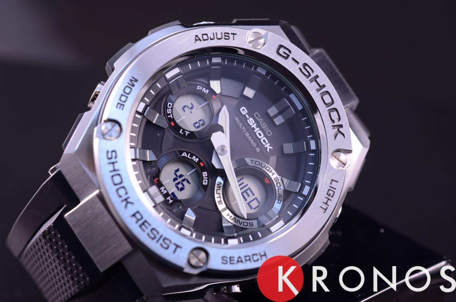 Лаконичный дизайн напоминает о классическом облике механических часов, серебристый блеск нержавеющей стали 316L никогда не потеряет актуальности. Противоударный корпусУдаропрочный корпусМеханизм заключён в корпус, выполненный из современных материалов, устойчивых к ударам, механическим повреждениям и падению с высоты: инновационный пластик, карбон, нержавеющая сталь, титан. с лёгкостью выдерживает любые нагрузки и падения с высоты, дополнительную устойчивость к повреждениям придаёт полимерная составляющая. Модель серии G-Steel - это часы на солнечной батарее , есть индикатор заряда аккумулятора. Минеральное стекло. Циферблат со светодиодной подсветкойСветодиодная подсветкаСветодиодная или LED-подсветка обеспечивает появление яркого холодного свечения за счёт LED-элементов - маленьких лампочек. Они потребляют минимальное количество энергии, чаще всего можно встретить 1 светодиод, в нижней части циферблата.. Приём радиосигнала. Таймер, секундомер, мировое времяМировое время Полезное часовое усложнение, отображающее время в основных городах и известных областях по всему миру, оно связано с часовыми поясами, удобно для путешественников и бизнесменов. , будильник, UTCUTCВсемирное кординационное время, не имеющее привязки к географическому положению Гринвича, основывается на атомном отсчёте времени. Регулировка времени осуществляется более точно, чем устаревшее GMT.