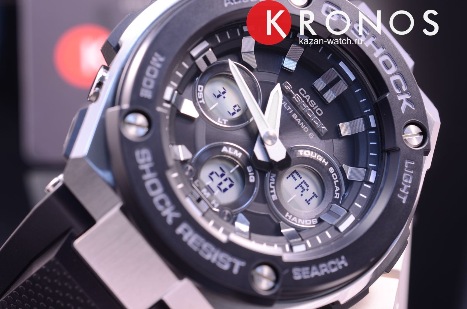 Спортивные ударопрочные наручные кварцевые мужские часы на солнечной батарее. Цифровой циферблат темного цвета. Корпус часов выполнен из нержавеющей стали и пластика черного цвета. Минеральное стекло устойчиво к царапинам. Часы надежно удерживаются на руке ремешком из высокопрочного полимерного пластика черного цвета. Водонепроницаемость 200М. Из дополнительных функций в часах присутствует: вечный календарь, секундомер, таймер обратного отсчета, второй часовой пояс, будильник (количество установок: 5), ежечасный сигнал, функция включения/отключения звука кнопок, автоподсветка, прием радиосигнала.