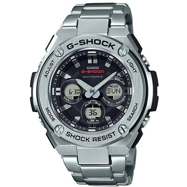 Спортивные ударопрочные наручные кварцевые мужские часы на солнечной батарее. Цифровой циферблат темного цвета. Корпус часов выполнен из нержавеющей стали и пластика черного цвета. Минеральное стекло устойчиво к царапинам. Часы надежно удерживаются на руке браслетом из нержавеющей стали. Водонепроницаемость 200М. Из дополнительных функций в часах присутствует: вечный календарь, секундомер, таймер обратного отсчета, второй часовой пояс, будильник (количество установок: 5), ежечасный сигнал, функция включения/отключения звука кнопок, автоподсветка, прием радиосигнала.