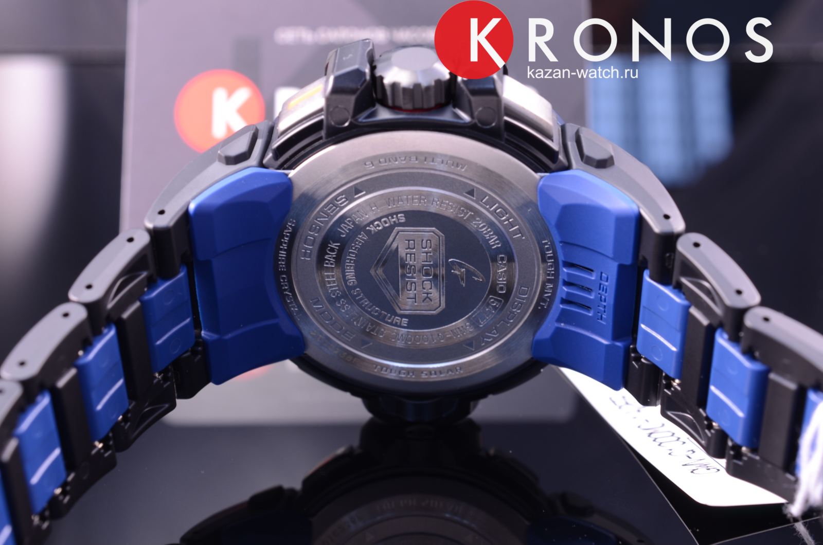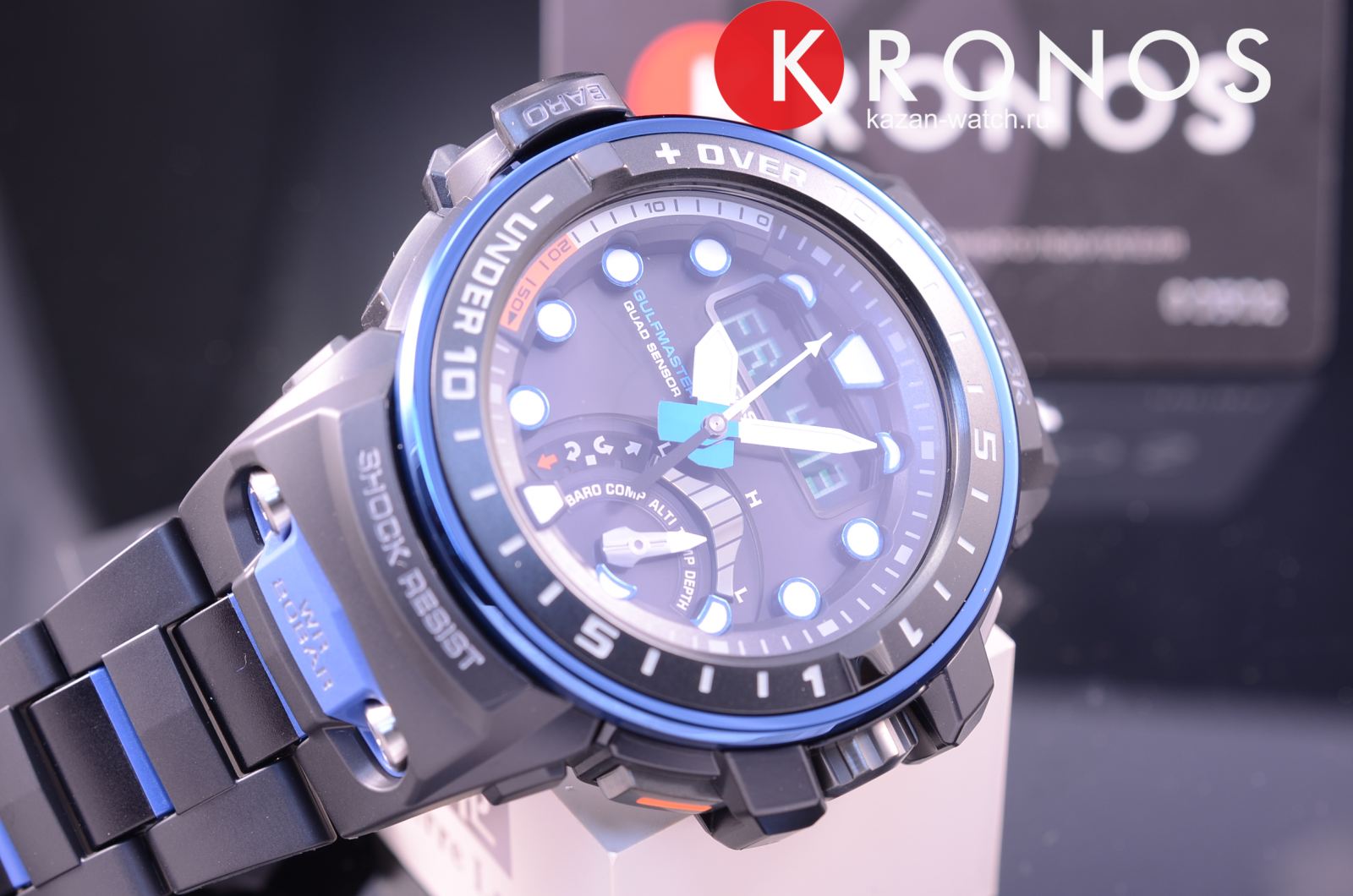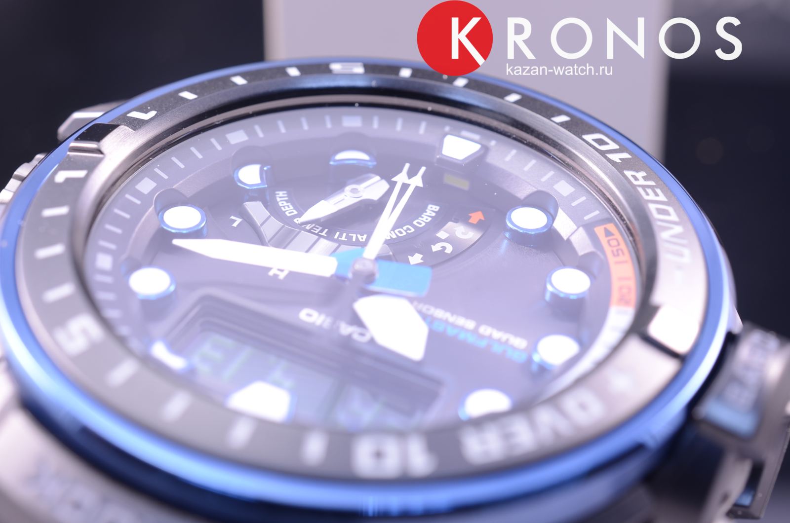 Современные японские наручные мужские часы. Круглый корпус и браслет часов выполнены из полимерного пластика синего цвета, безель часов из нержавеющей стали с антикоррозийными свойствами. Водонепроницаемость 20 ATM. Сапфировое стекло, устойчивое к появлению царапин. Часы снабжены множеством дополнительных функций - барометр, высотомер, компас, термометр, рдиосинхронизация времени, глубиномер, данные о восходе и закате солнца. Источник энергии - солнечная батарея.