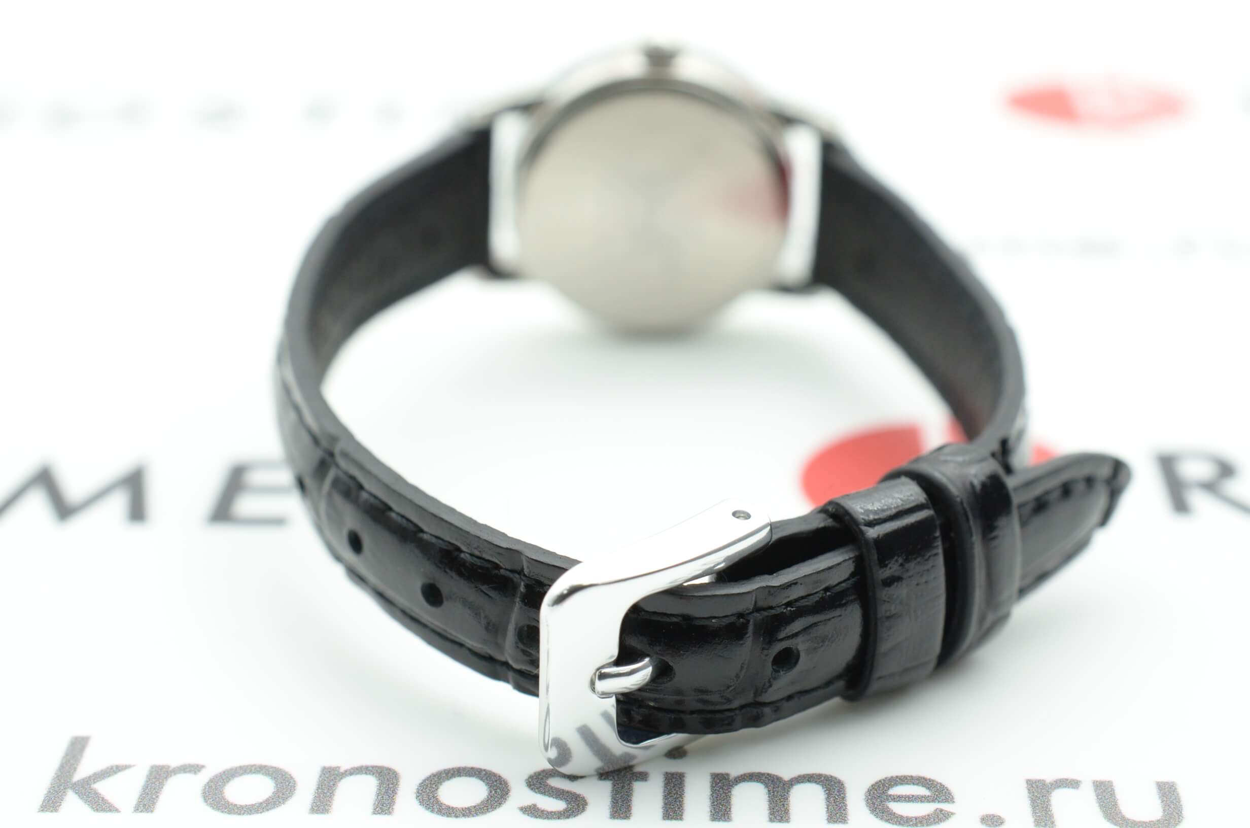 Черный ремень наручных часов сделан из натуральной, мягкой кожи. Круглый, блестящий корпус серебристого цвета сделан из гипоаллергенной латуни. На белом циферблате расположены отчетливые арабские цифры черного цвета. Прочное минеральное стекло надежно защищает часы от повреждений. Аксессуар станет красивым дополнением к любому образу и отлично подойдет как на праздничный выход, так и на каждый день.