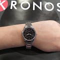 Серебристый цвет хорошо гармонирует с чёрным циферблатом. Стрелки светятся в темноте. Защита от воды до 50м.