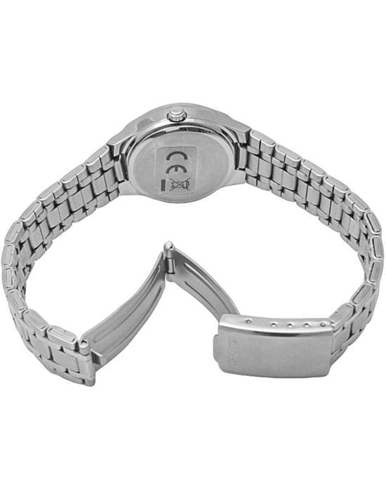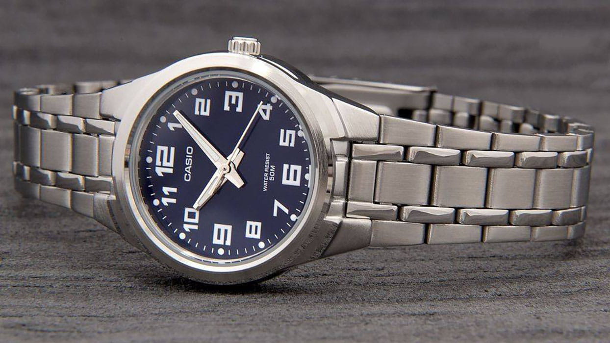 Наручные часы от Casio выполнены в повседневном стиле. Сдержанный дизайн и правильные пропорции позволяют аксессуару оставаться актуальным на долгие годы. Аккуратный, круглый корпус выполнен из прочной, гипоаллергенной латуни и прочно соединен с браслетом из нержавеющей стали. На циферблате насыщенно-синего цвета расположены отчетливые арабские цифры. Часы надежно защищены от повреждений минеральным стеклом. Благодаря кварцевому механизму отсутствует необходимость постоянно заводить часы. Водонепроницаемость равна 50 WR.