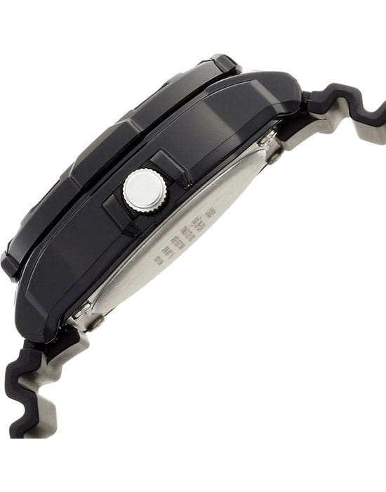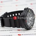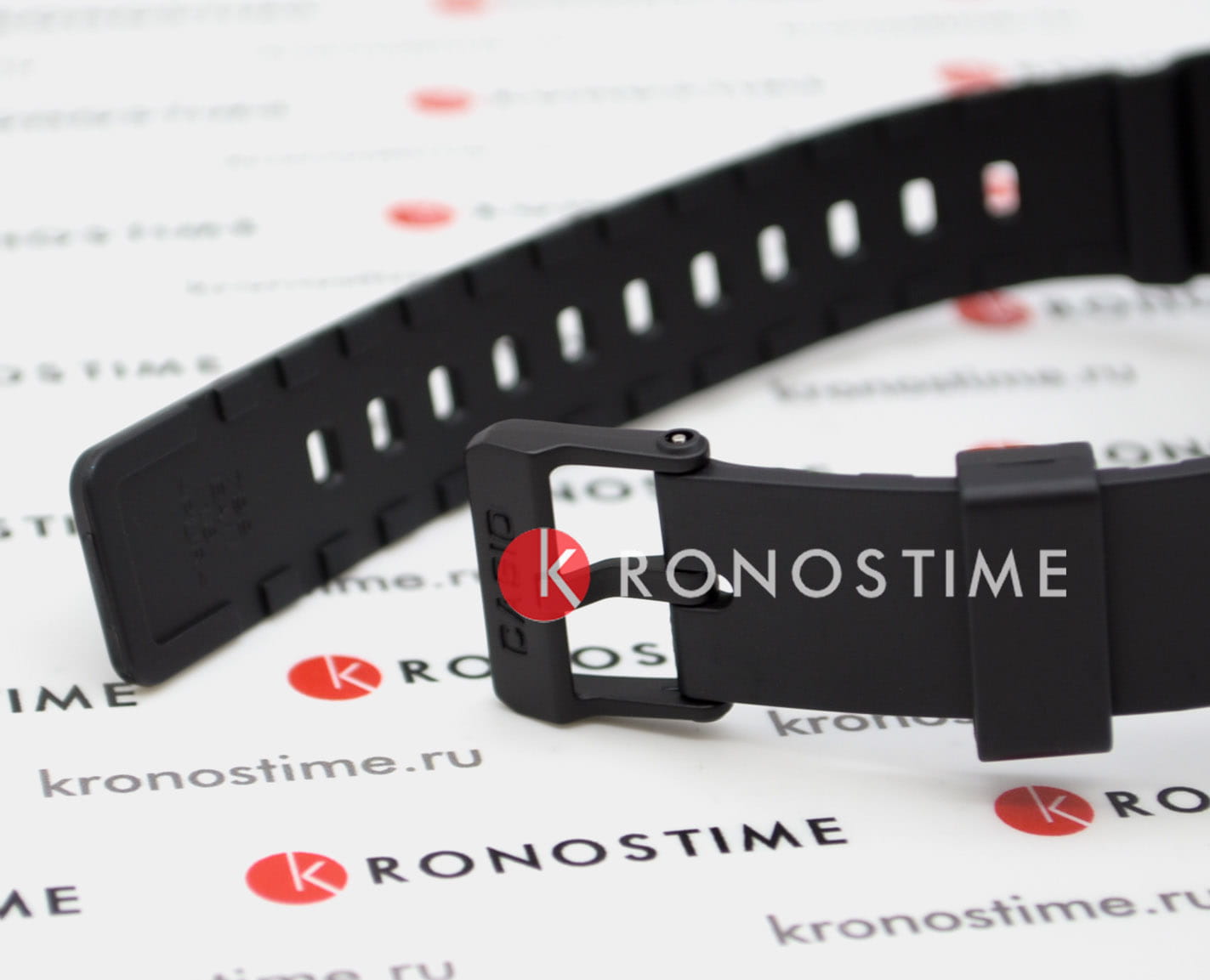 Кварцевые мужские наручные часы с арабскими цифрами и календарем. Корпус - Пластиковый; Стекло - Пластик; Водозащита - 100 м. (WR 100); Материал ремешка - Пластиковый; Цвет ремешка - Черный; Цвет циферблата - Черный.