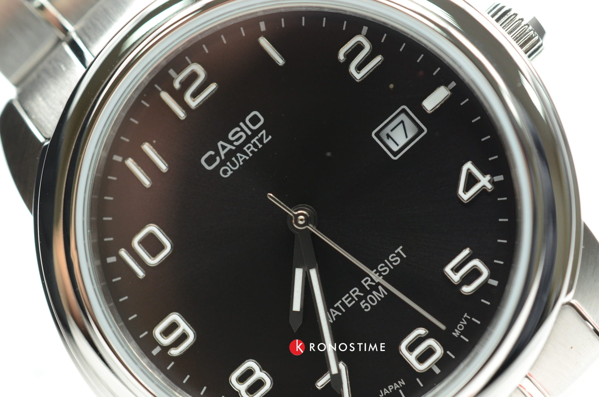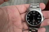 Приятный циферблат и удобный браслет. Водонепроницаемость до 50м. Показывают дату.