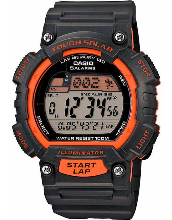 Прочные и долговечные часы от Casio сделаны из полимерных материалов. Высокая водонепроницаемость в 100 WR. Работают от солнечной батарейки, которая заряжается за счет света. Светодиодная подсветкаСветодиодная подсветкаСветодиодная или LED-подсветка обеспечивает появление яркого холодного свечения за счёт LED-элементов - маленьких лампочек. Они потребляют минимальное количество энергии, чаще всего можно встретить 1 светодиод, в нижней части циферблата. обеспечивает видимость данных в темноте.