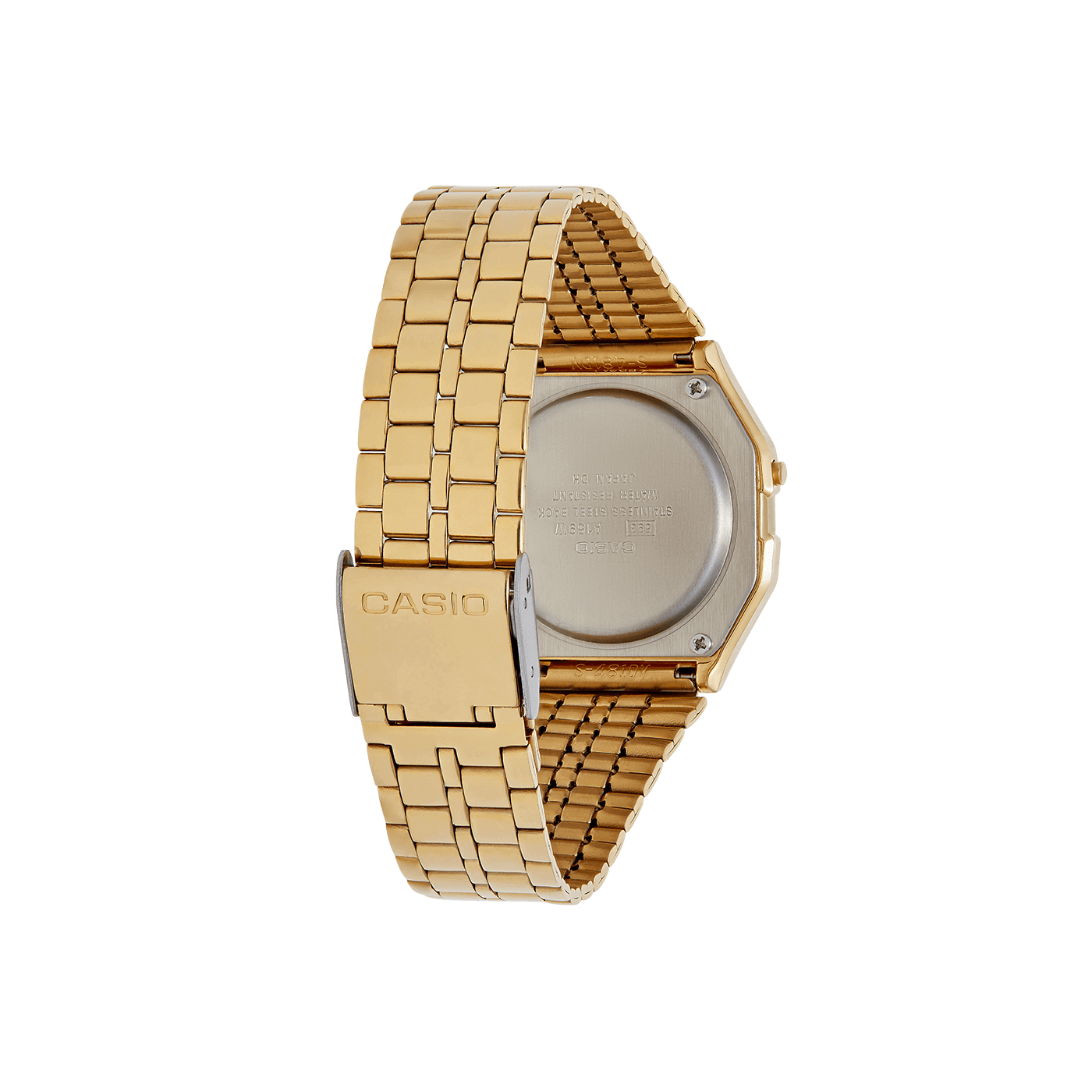 Японские часы унисекс Casio Vintage A158WETG-9AEF, кварцевый механизм с высокой точностью. Класс водозащиты: 30 метров, позволит защитить корпус от случайных брызг или капель дождя. Корпус часов изготовлен из стали, с IP покрытием золотого цвета.