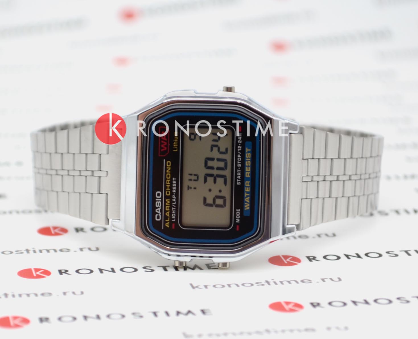 Японские наручные часы с хронографом Casio Vintage A159W-N1, кварцевый механизм с высокой точностью. Класс водозащиты: 30 метров, позволит защитить корпус от случайных брызг или капель дождя. Корпус часов изготовлен из стали, серебристого цвета. ХронографХронографФункция позволяет измерять отрезки времени с особой точностью: часы, минуты, секунды. Верным признаком хронографа является наличие на циферблате 3 дополнительных окошек-счётчиков.. Циферблат подсвечивается светодиодом. СекундомерСекундомерСекундоме́р — прибор, способный измерять интервалы времени с точностью до долей секунды. с точностью показаний 1/100 сек и временем измерения 1 ч. 12-ти и 24-х часовой формат времени. Раскладывающаяся застежка.