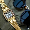 Японские мужские часы с хронографом Casio Vintage A500WGA-9D (A500WGA-9), кварцевый механизм с высокой точностью. Класс водозащиты: 30 метров, позволит защитить корпус от случайных брызг или капель дождя. Корпус часов изготовлен из пластика, золотистого цвета.