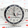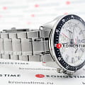 Аксессуар с серебристым циферблатом имеет черные элементы дизайна, общее оформление навеяно автомобильной тематикой. Секундная стрелка с красным наконечником улучшает читаемость показателей. Надёжные часы с закручивающейся задней крышкой оснащены кварцевым механизмом с точностью хода +/- 30 секунд в месяц. Корпус и браслет из хирургической стали 316L. БезельБезельВнешний ободок, закрепляющий стекло. В спортивных часах так называется поворотное кольцо с делениями на циферблате, выполняет роль таймера – замеряет отрезки времени на шкале. Неподвижный безель – элемент декора. Однонаправленно вращающийся безель на дайверских часах позволяет фиксировать моменты погружения и выныривания на поверхность. с синим IP-покрытиемIP-покрытиеМетод ионного напыления. Демонстрирует повышенную устойчивость к истиранию, окислению и химическим веществам. Под воздействием высокого давления и температуры около 1500°C молекулы металла надёжно соединяются с частицами корпуса часов.. Водостойкость до 10 бар. Люминесцентная подсветкаЛюминесцентное покрытиеПозволяет считывать показания времени в темноте. Производители наносят на стрелки, часовые индексы, безель или поверхность циферблата светонакопительный состав, дающий холодное свечение. Neobrite. ХронографХронографФункция позволяет измерять отрезки времени с особой точностью: часы, минуты, секунды. Верным признаком хронографа является наличие на циферблате 3 дополнительных окошек-счётчиков., секундомер, апертура даты. Габариты: 43,8х48,5мм, толщина 12,1мм, вес 144г