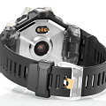 Перед вами первые часы Casio G-Shock с пятью датчиками из серии GBD-H1000. Помимо стильного внешнего вида, на борту модели с полупрозрачным корпусом и черным ремешком присутствует: термометр, барометр, высотомер, компас, пульсометр и шагомер! Отдельно отметим наличие технологий GPS и Bluetooth. Связь со спутниками позволяет строить маршрут в приложении, получать информацию о пройденном расстоянии, скорости, точном времени в данной локации. Блютус позволяет удобно отображать все метрики с часов на экране смартфона, а также выводить на часы уведомления о входящих звонках, сообщениях и имейлах. Из полезных особенностей GBD-H1000 обладают вибро-уведомлениями, а значит вы не пропустите важную встречу, сообщение или приближение к критической зоне пульса. Не забываем про стандартную для джишоков неубиваемость и водозащиту до 200 метров. Базовый часовой набор функций способен работать от зарядки с помощью солнечной батареи, если вы будете пользоваться полным функционалом с GPS и пульсометром, вам потребуется USB-зарядка, которая обеспечит работу часов до 14 часов.