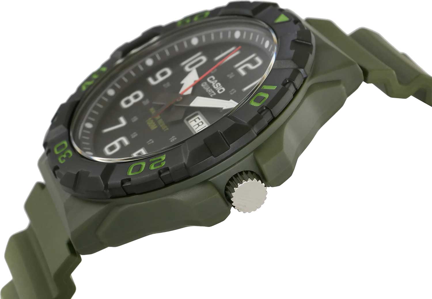 Японские мужские часы с органическим стеклом Casio Collection MRW-210H-3AVEF, кварцевый механизм с высокой точностью. Стильные часы, которые станут отличным помощником и современным аксессуаром в образе мужчины. Standard Analog. Корпус часов изготовлен из пластика. Вращающийся безельБезельВнешний ободок, закрепляющий стекло. В спортивных часах так называется поворотное кольцо с делениями на циферблате, выполняет роль таймера – замеряет отрезки времени на шкале. Неподвижный безель – элемент декора. Однонаправленно вращающийся безель на дайверских часах позволяет фиксировать моменты погружения и выныривания на поверхность.. Подсветка NeobriteПодсветка NeobriteИспользование светонакопительных составов на основе сульфида цинка или алюмината стронция, яркий свет можно наблюдать на протяжении 6-10 часов после «зарядки» часов около источника света. обеспечивает длительное послесвечение в темноте даже после кратковременного нахождения на свету. Окошко даты и дня недели в положении 3 часов. 12-ти и 24-х часовой формат времени. Рифленая заводная головка с защитой. Класс водозащиты: 100 метров, позволит плавать, нырять и заниматься другими водными видами спорта. Ремешок из полимерного материала на стандартной застежке.