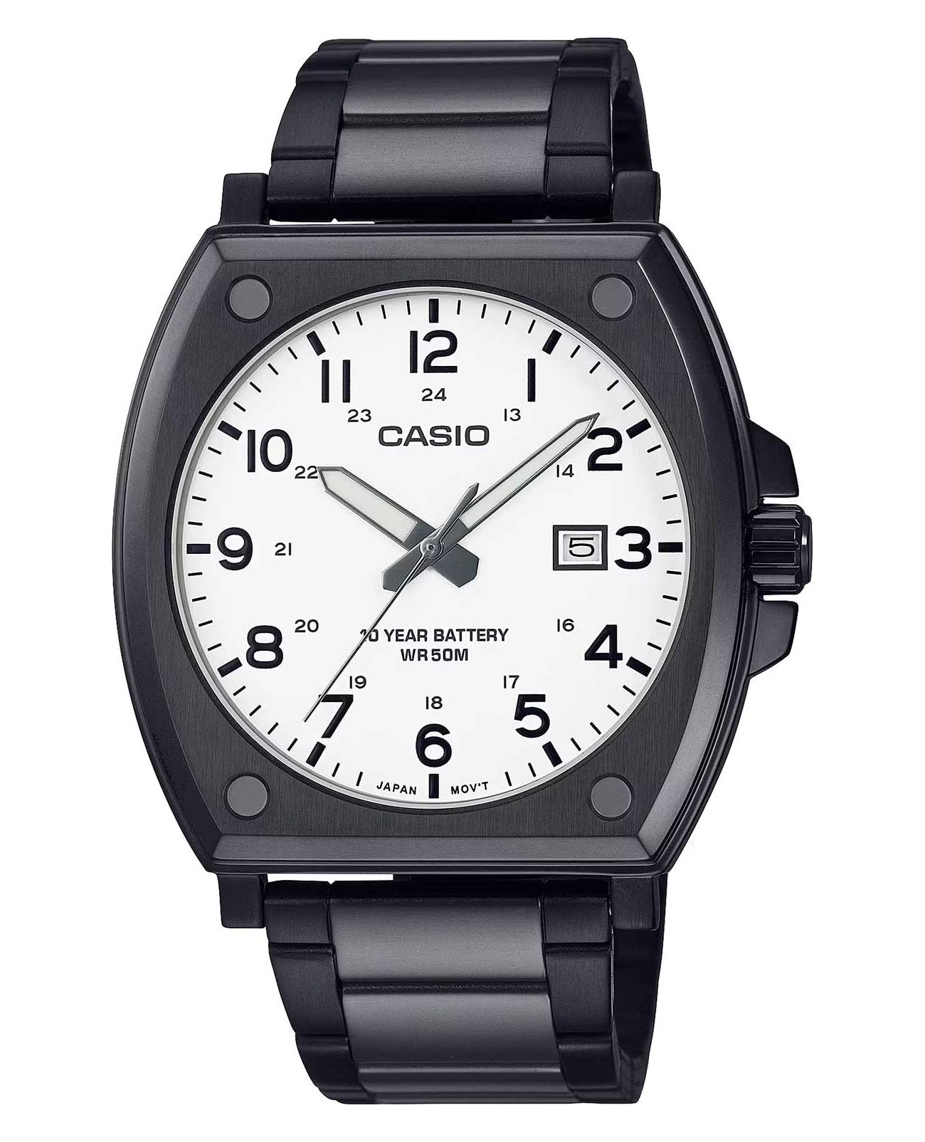 Японские мужские часы с минеральным стекломМинеральное стеклоМинеральное стекло представляет собой искусственно выращенный минерал кварца. Такое стекло отличается особой устойчивостью к повреждениям и царапинам. Уступает по некоторым качествам сапфировому стеклу. Casio Collection MTP-E715D-7A, кварцевый механизм с высокой точностью. Корпус часов изготовлен из стали с IP-покрытиемIP-покрытиеМетод ионного напыления. Демонстрирует повышенную устойчивость к истиранию, окислению и химическим веществам. Под воздействием высокого давления и температуры около 1500°C молекулы металла надёжно соединяются с частицами корпуса часов.. 12-ти и 24-х часовой формат времени. Окошко даты находится в положении 3 часа. Стрелки с люминесцентным покрытиемЛюминесцентное покрытиеПозволяет считывать показания времени в темноте. Производители наносят на стрелки, часовые индексы, безель или поверхность циферблата светонакопительный состав, дающий холодное свечение.. Батарея рассчитана на 10 лет. Заводная головка с защитой. Класс водозащиты: 50 метров, позволит защитить корпус от случайных брызг или капель дождя. Стальной браслет с IP-покрытиемIP-покрытиеМетод ионного напыления. Демонстрирует повышенную устойчивость к истиранию, окислению и химическим веществам. Под воздействием высокого давления и температуры около 1500°C молекулы металла надёжно соединяются с частицами корпуса часов. на раскладной застёжкеРаскладная застёжкаТакой тип застёжки используется только на браслетах из металла. Она никогда не раскрывается полностью, происходит разделение на 2 и более частей. Раскладывающая застёжка снизит вероятность потери часов к минимуму..