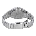 Японские мужские кварцевые часы с минеральным стекломМинеральное стеклоМинеральное стекло представляет собой искусственно выращенный минерал кварца. Такое стекло отличается особой устойчивостью к повреждениям и царапинам. Уступает по некоторым качествам сапфировому стеклу. Casio Collection MTP-RS100D-1A, кварцевый механизм с высокой точностью. Корпус часов изготовлен из нержавеющей стали. Питание от солнечной энергии. Время работы - 4 месяца. Циферблат с метками в виде штрихов выполнен по технологии Sunray (солнечные лучи). Циферблат с метками в виде штрихов. Стрелки и метки с люминесцентным покрытиемЛюминесцентное покрытиеПозволяет считывать показания времени в темноте. Производители наносят на стрелки, часовые индексы, безель или поверхность циферблата светонакопительный состав, дающий холодное свечение.. Заводная головка с защитой. Класс водозащиты: 50 метров, позволит защитить корпус от случайных брызг или капель дождя. Стальной браслет на раскладной застёжкеРаскладная застёжкаТакой тип застёжки используется только на браслетах из металла. Она никогда не раскрывается полностью, происходит разделение на 2 и более частей. Раскладывающая застёжка снизит вероятность потери часов к минимуму..