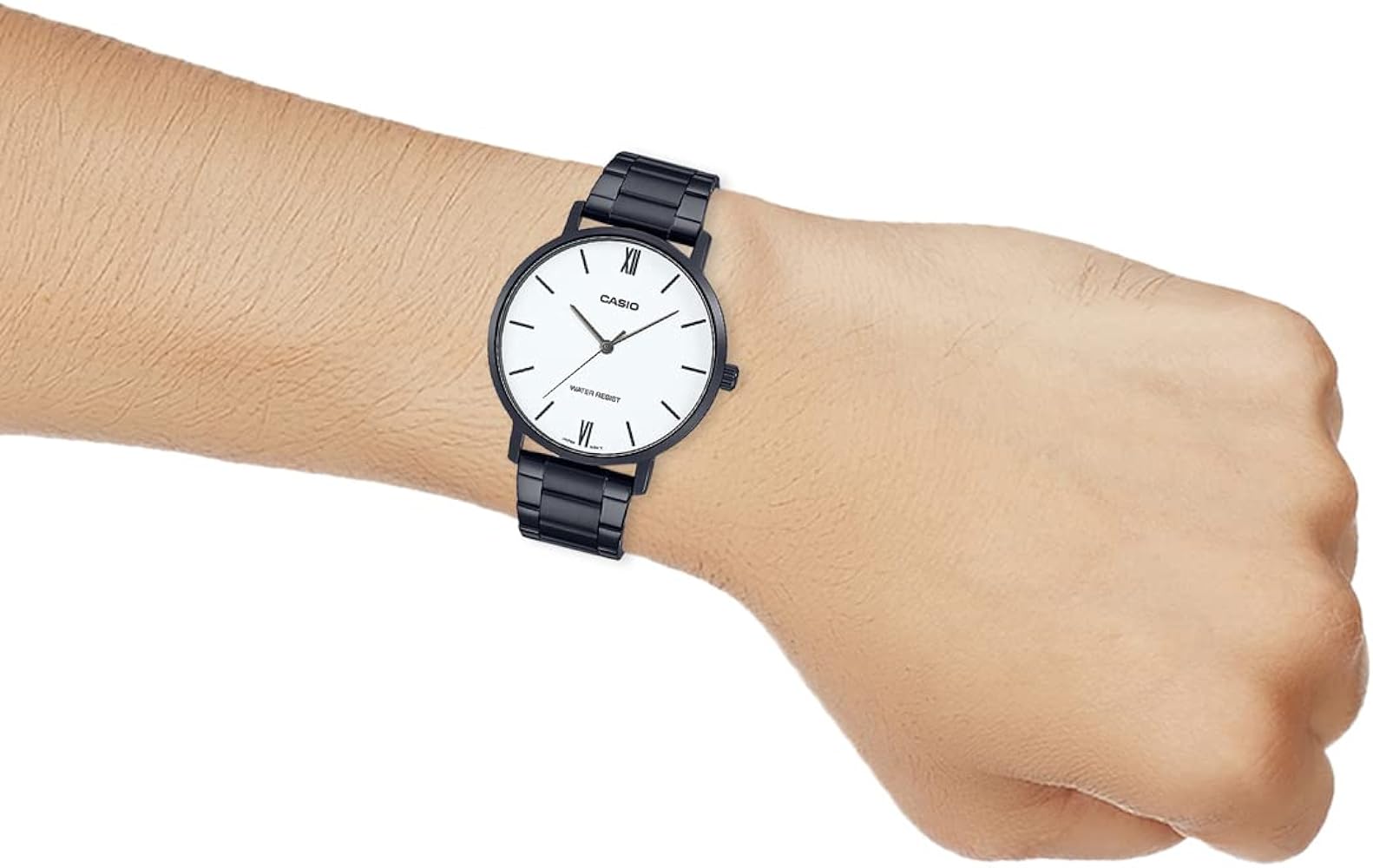 Японские мужские часы MTP-VT01B-7B с минеральным стекломМинеральное стеклоМинеральное стекло представляет собой искусственно выращенный минерал кварца. Такое стекло отличается особой устойчивостью к повреждениям и царапинам. Уступает по некоторым качествам сапфировому стеклу. изящно смотрятся на запястье, они привлекают классическим исполнением и правильной геометрией. Минималистичная модель станет отличным решением для любого случая: на работу, переговоры с деловыми партнёрами, прогулку с друзьями или праздничный вечер. Отсутствуют лишние детали, что позволяет часам быть актуальными на долгие годы. Корпус выполнен из нержавеющей стали с IP-покрытиемIP-покрытиеМетод ионного напыления. Демонстрирует повышенную устойчивость к истиранию, окислению и химическим веществам. Под воздействием высокого давления и температуры около 1500°C молекулы металла надёжно соединяются с частицами корпуса часов.. Браслет на раскладной застёжкеРаскладная застёжкаТакой тип застёжки используется только на браслетах из металла. Она никогда не раскрывается полностью, происходит разделение на 2 и более частей. Раскладывающая застёжка снизит вероятность потери часов к минимуму.. Модель комплектуется надёжным механизмом, точность хода которого составляет +/- 20 сек/мес. Водозащита: 30 метров, позволит защитить корпус от случайных брызг или капель дождя.