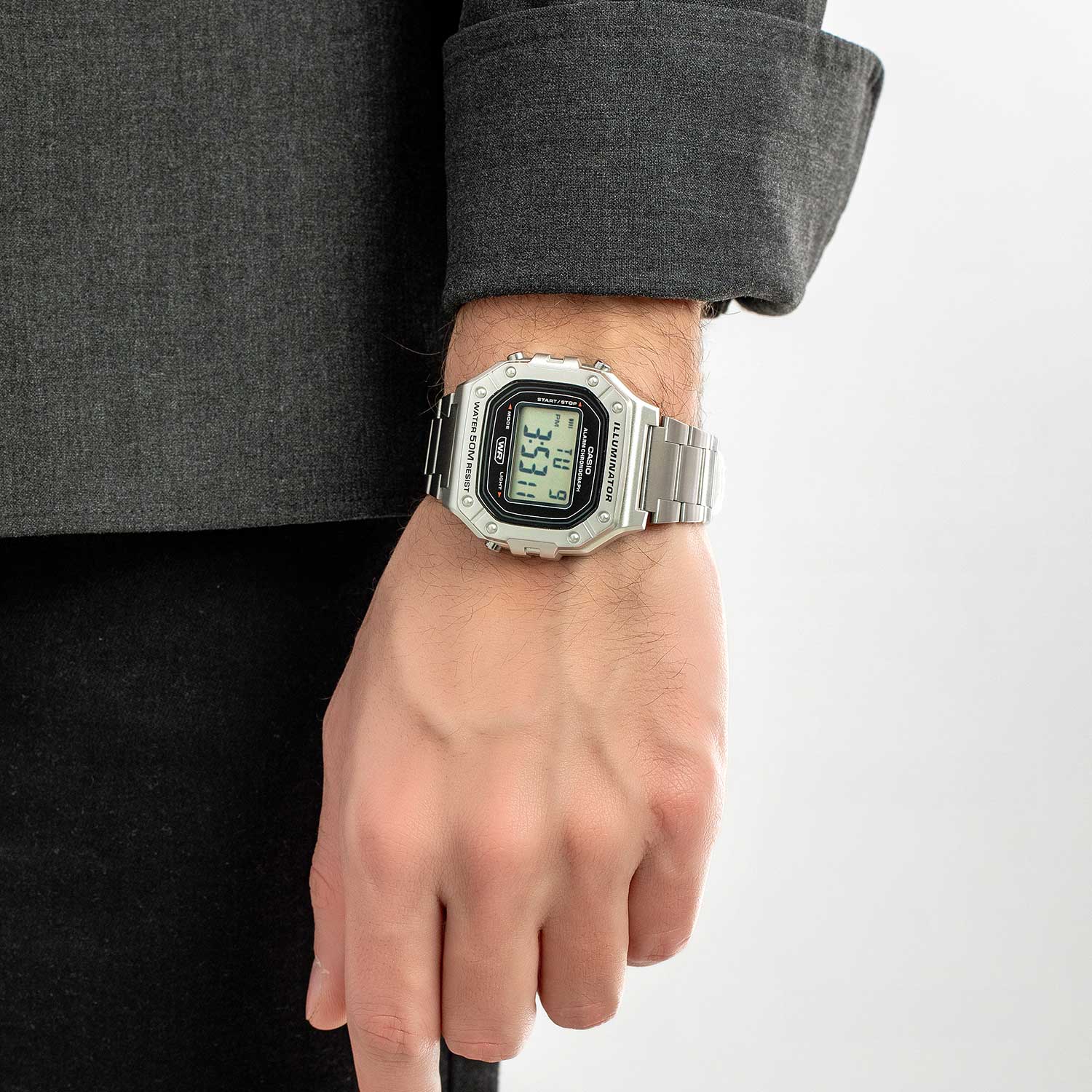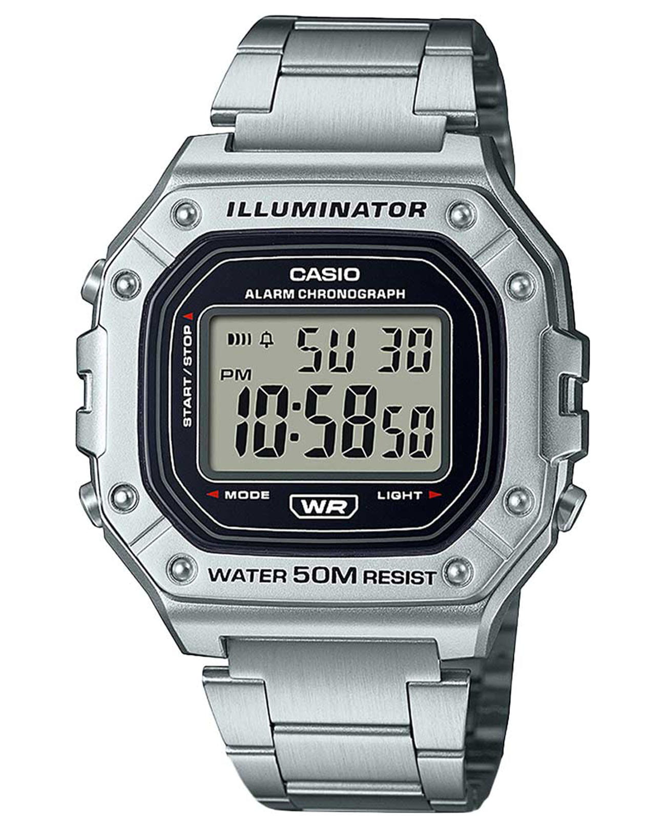 Японские часы с хронографом и светодиодом Casio Collection W-218HD-1AVDF (W-218HD-1A), кварцевый механизм с высокой точностью. Класс водозащиты: 50 метров, позволит защитить корпус от случайных брызг или капель дождя. Корпус часов изготовлен из пластика, серебристого цвета.