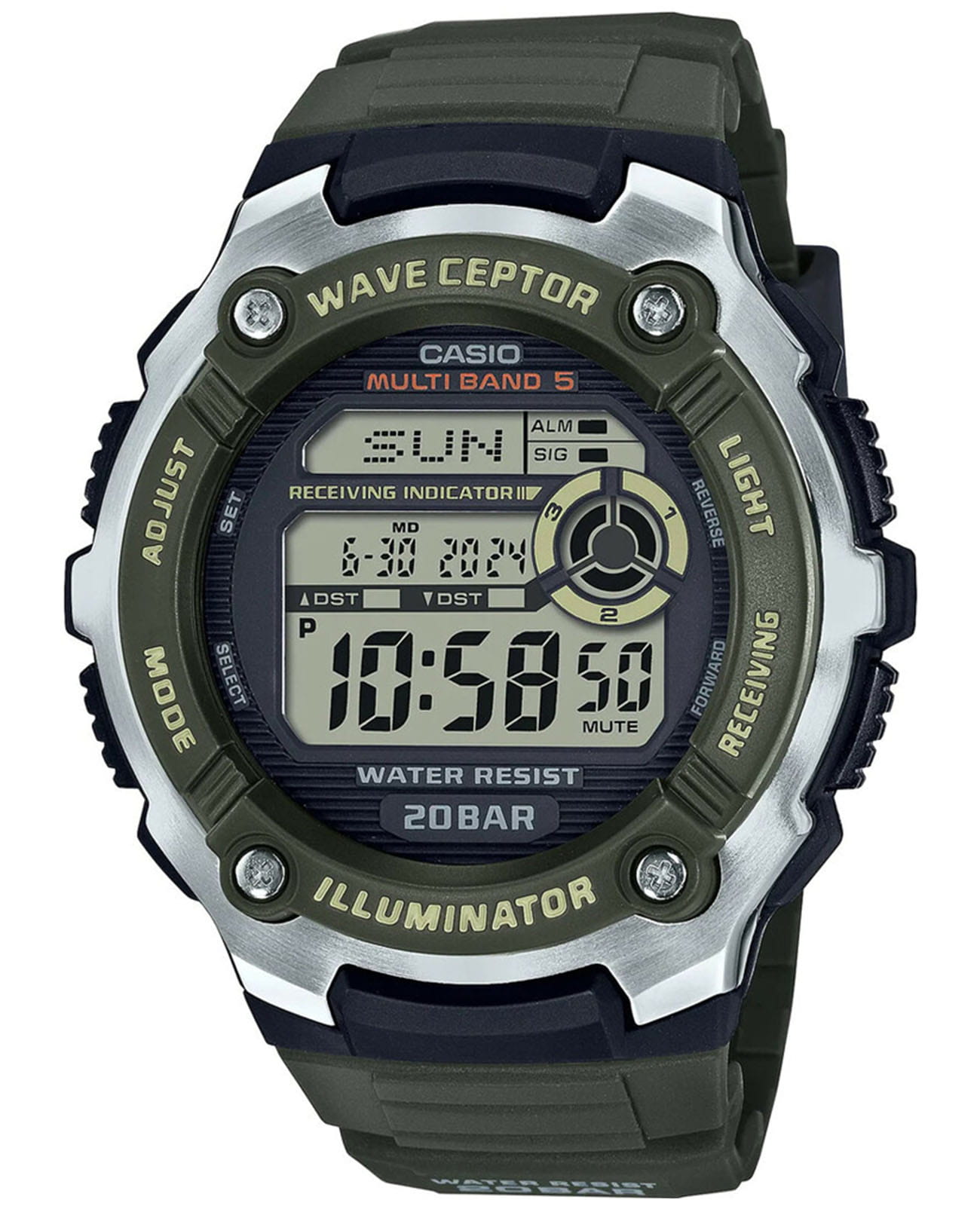 Высокотехнологичные японские наручные мужские часы. Круглый корпус и браслет часов выполнены из нержавеющей стали и пластика. Водонепроницаемость 200 метров, позволит плавать, нырять и заниматься другими водными видами спорта. Часы оснащены такими функциями как cекундомерСекундомерСекундоме́р — прибор, способный измерять интервалы времени с точностью до долей секунды., таймерТаймерОтсчитывает секунды в обратном направлении в заданном интервале времени., будильникБудильникБуди́льник — часы, в заданный момент времени подающие звуковой, световой и/или в редких случаях другой сигнал., мировое времяМировое время Полезное часовое усложнение, отображающее время в основных городах и известных областях по всему миру, оно связано с часовыми поясами, удобно для путешественников и бизнесменов.
