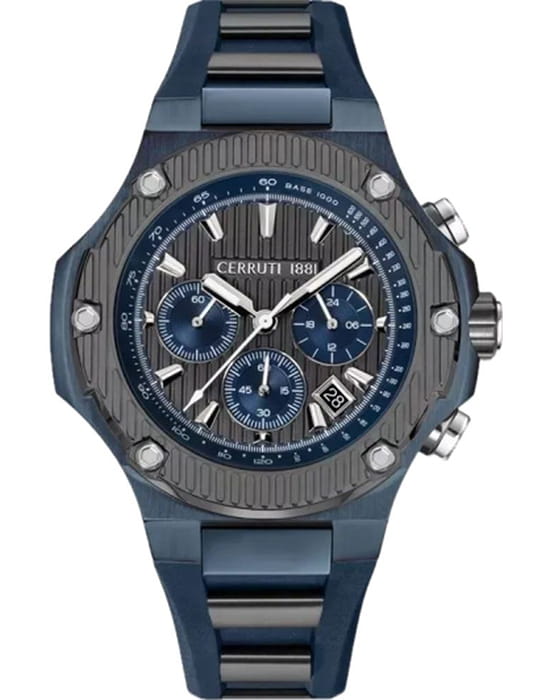 Cerruti 1881 CIWGO0050601 — выразительные мужские часы с современным архитектурным дизайном, сочетающие спортивную мощь и итальянскую утончённость. Корпус из нержавеющей стали с ip-покрытиемIP-покрытиеМетод ионного напыления. Демонстрирует повышенную устойчивость к истиранию, окислению и химическим веществам. Под воздействием высокого давления и температуры около 1500°C молекулы металла надёжно соединяются с частицами корпуса часов. фактурным шестигранным безелемБезельВнешний ободок, закрепляющий стекло. В спортивных часах так называется поворотное кольцо с делениями на циферблате, выполняет роль таймера – замеряет отрезки времени на шкале. Неподвижный безель – элемент декора. Однонаправленно вращающийся безель на дайверских часах позволяет фиксировать моменты погружения и выныривания на поверхность. с ip-покрытиемIP-покрытиеМетод ионного напыления. Демонстрирует повышенную устойчивость к истиранию, окислению и химическим веществам. Под воздействием высокого давления и температуры около 1500°C молекулы металла надёжно соединяются с частицами корпуса часов. подчёркивает индустриальный характер модели, а насыщенный циферблат с тремя счётчиками хронографаХронографФункция позволяет измерять отрезки времени с особой точностью: часы, минуты, секунды. Верным признаком хронографа является наличие на циферблате 3 дополнительных окошек-счётчиков. создаёт динамичную композицию. Контрастные стрелки и метки с люминесцентным покрытиемЛюминесцентное покрытиеПозволяет считывать показания времени в темноте. Производители наносят на стрелки, часовые индексы, безель или поверхность циферблата светонакопительный состав, дающий холодное свечение. обеспечивают превосходную читаемость, а прочное минеральное стеклоМинеральное стеклоМинеральное стекло представляет собой искусственно выращенный минерал кварца. Такое стекло отличается особой устойчивостью к повреждениям и царапинам. Уступает по некоторым качествам сапфировому стеклу. надёжно защищает циферблат. Мягкий силиконовый ремешок с интегрированным дизайном гармонирует с цветовой палитрой корпуса и обеспечивает комфортное прилегание к запястью. Cerruti 1881 — это стильный союз технологий, функциональности и узнаваемого итальянского характера, идеально подходящий для активного и уверенного мужчины.