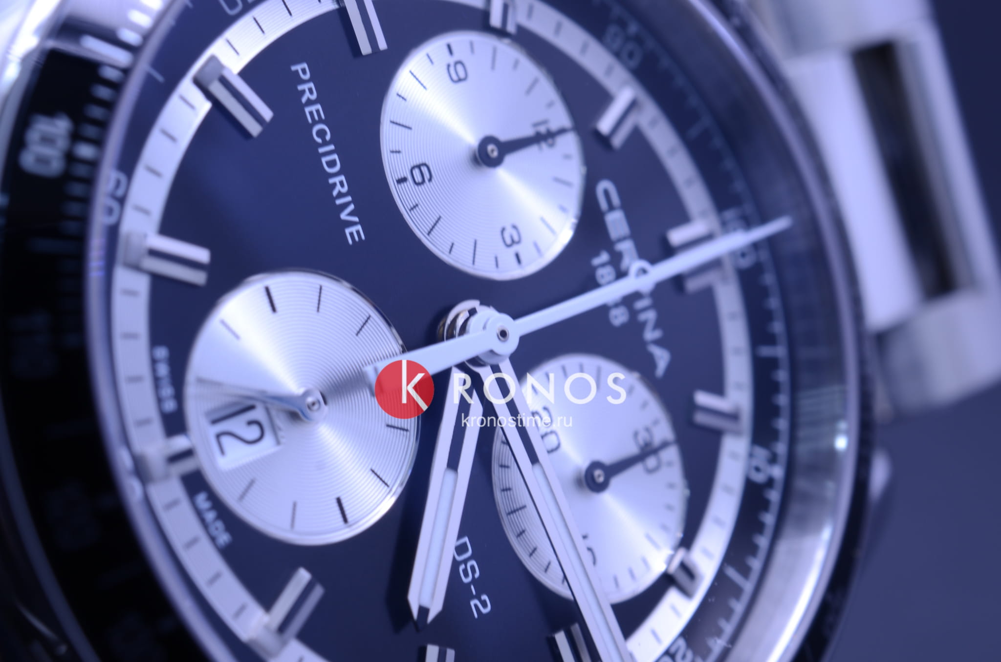 Брендовый аксессуар сразу притягивает внимание. Циферблат «panda-style», дополненный контрастными элементами и функциональными окошками, отражает спортивную динамичность. Алюминиевый безельБезельВнешний ободок, закрепляющий стекло. В спортивных часах так называется поворотное кольцо с делениями на циферблате, выполняет роль таймера – замеряет отрезки времени на шкале. Неподвижный безель – элемент декора. Однонаправленно вращающийся безель на дайверских часах позволяет фиксировать моменты погружения и выныривания на поверхность. размечен шкалой тахиметраТахиметрРазмеченная шкала, располагается на ободке или безеле часов. Тахиметр позволяет рассчитать скорость на определённом участке пути, расстояние измеряется в километрах или милях.. Часы основаны на концепции Double SecurityDS ConceptDouble Security Concept, обозначает двойную надёжность и безупречную точность часов Certina. Двойная система защиты подразумевает обеспечение максимальной устойчивости к ударам и высоких показателей водонепроницаемости., что свидетельствует о высокой устойчивости к ударам и водонепроницаемости (до 10 бар) модели. Швейцарский кварцевый калибр ETA 251.264 Precidrive™Precidrive™Инновационный кварцевый механизм Certina. Часы, оснащённые этим швейцарским калибром, приравниваются к точности к сертифицированным хронометрам, точность хода составляет +/-10 секунд в год., измеряющий время с точностью до одной сотой секунды. Двухстороннее антибликовое покрытие для стекла из сапфира. Корпус и браслет из стали 316L с антикоррозионными свойствами. Задняя крышка с фирменной гравировкой. ХронографХронографФункция позволяет измерять отрезки времени с особой точностью: часы, минуты, секунды. Верным признаком хронографа является наличие на циферблате 3 дополнительных окошек-счётчиков., календарь, индикатор EOLEOLПредставляет собой систему, уведомляющую владельца часов о необходимости замены элемента питания. За 2 недели до полного разряда батарейки секундная стрелка перестаёт ходить чётко и начинает перепрыгивать на 3-4 деления., секундомер. Диаметр корпуса: 41 мм.