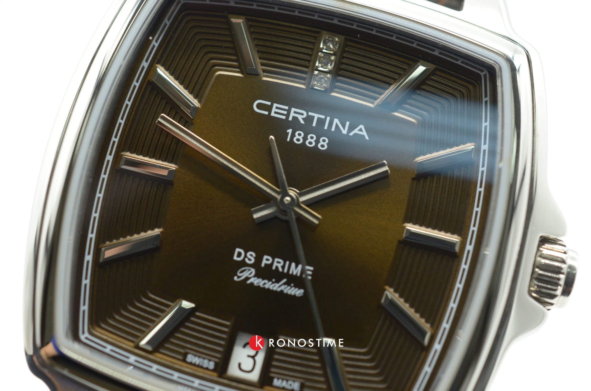 Модель с квадратным корпусом предстаёт в элегантном стиле. Циферблат с узорчатой вставкой украшен 3 бриллиантами. Работу часов обеспечивает швейцарский кварцевый механизм Precidrive™Precidrive™Инновационный кварцевый механизм Certina. Часы, оснащённые этим швейцарским калибром, приравниваются к точности к сертифицированным хронометрам, точность хода составляет +/-10 секунд в год.. Сапфировое стекло имеет антибликовую обработку. Ремешок из натуральной кожи. Апертура даты.