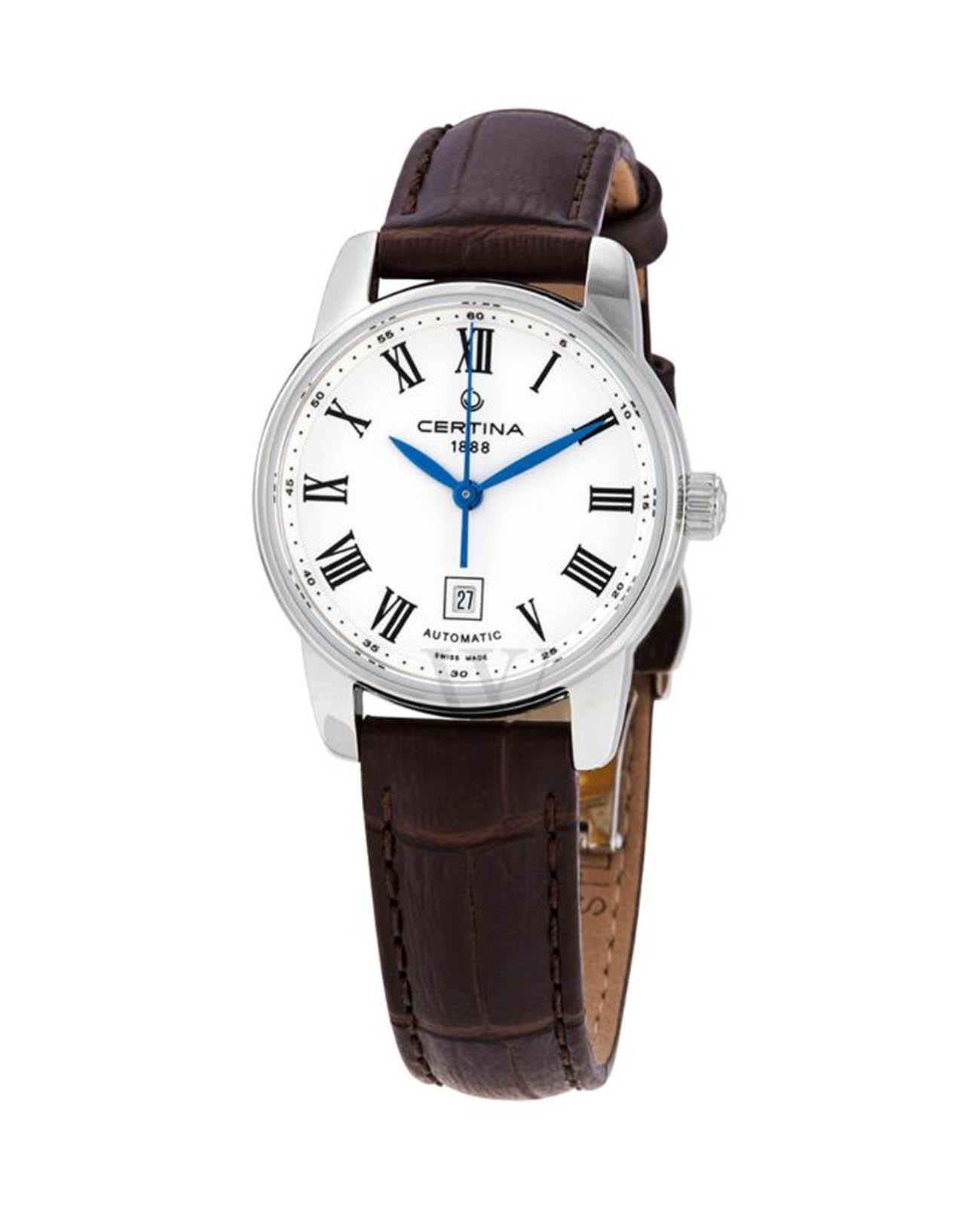 Женские швейцарские механические часы с автоподзаводом Certina DS Podium C0010071601300. Сапфировое стеклоСапфировое стеклоПрочный и надёжный материал из кристалла сапфира синтетического происхождения, характеризующийся особой твёрдостью и устойчивостью к царапинам и повреждениям. устойчивое к появлению царапин, обладающее высокой прозрачностью. Корпус изготовлен из нержавеющей стали. Окошко даты находится в положении 6 часов. Класс водозащиты: 100 метров, позволит плавать, нырять и заниматься другими водными видами спорта. Кожаный ремешок на застёжке-бабочке с кнопкамиЗастёжка "бабочка"Такой вид застёжки дополняется предохранителями, помогающими избежать случайного раскрытия браслета. Обладают изящным исполнением. .