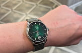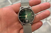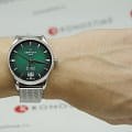 Классическая модель магическим образом притягивает взгляды окружающих благодаря лаконичному циферблату «кошачий глаз» зелёного цвета, привлекательно смотрится стальной браслет миланского плетения. «Юбилейные» наручные часы оснащены популярным калибром ETA Powermatic 80Powermatic 80Эксклюзивный калибр от швейцарской компании ETA с увеличенным запасом хода до 80 часов за счёт удлинённой заводной пружины. Характеризуется улучшенной системой спуска со сниженным трением. Nivachron с запасом хода 80 часов. Изделие отличается повышенной прочностью благодаря двойной системе защиты Double Security, а также устойчивостью к воздействию магнитных полей, что осуществляется спиралью баланса из материала Nivachron. Автоподзавод. Водостойкость 100 метров. . Апертура даты. Диаметр корпуса: 41 мм.